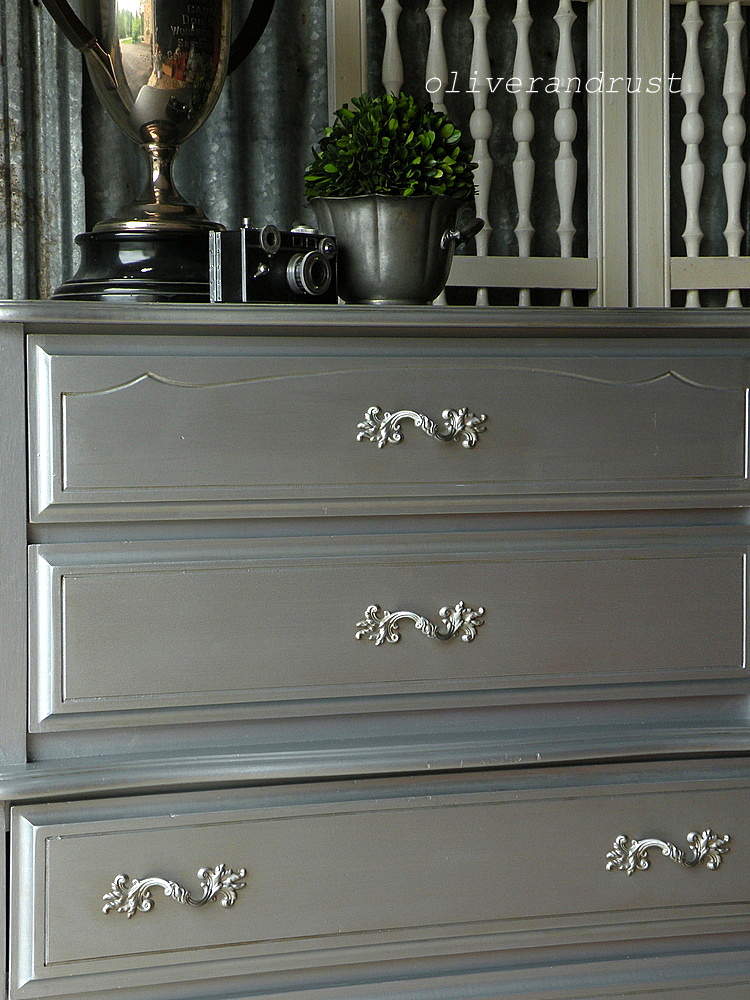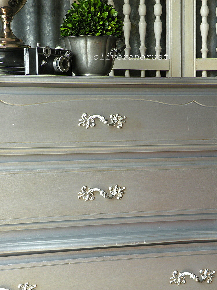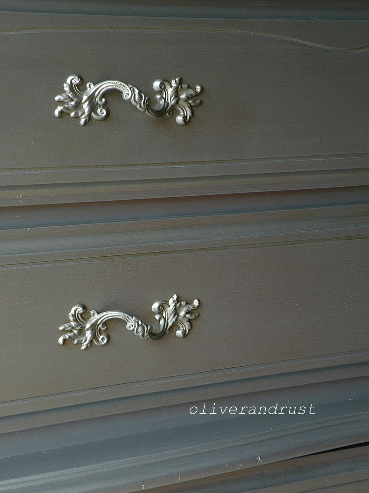 after they were dry and reattached to the drawers, i added the glaze on and off to them as well to bring out the detail of the french handles
