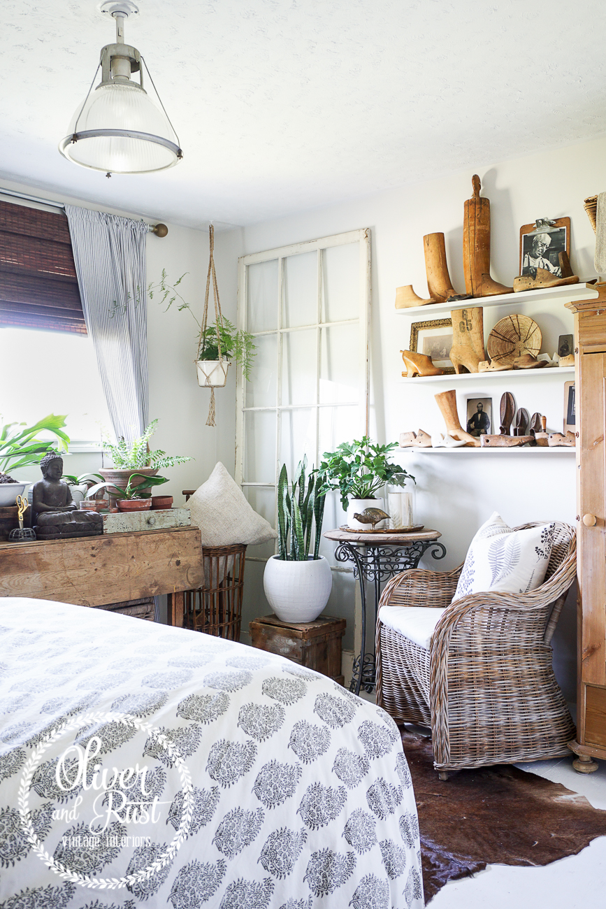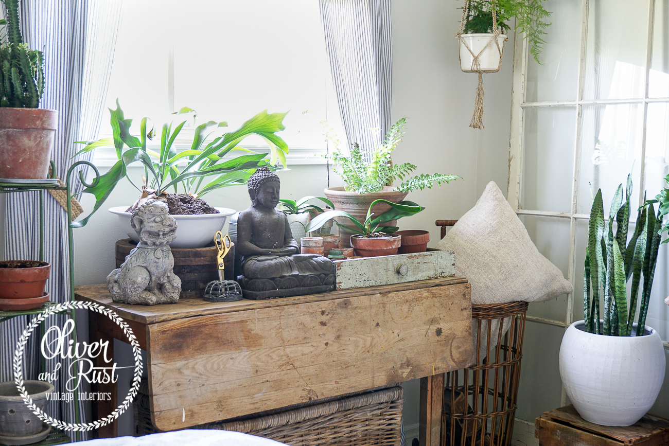 I hadn't changed much in here other than linens for the seasons etc so I cleaned off all the tables, inspected the few plants in here [most end up outside for the summer] and thought about the few changes I wanted to make. I have noticed as of late and probably influenced by social media and being a shop owner that my vintage style has been drafting a little bit more modern vintage. Not retro modern but just with little bits of sleeker thrown in rather than everything being vintage. Make sense?