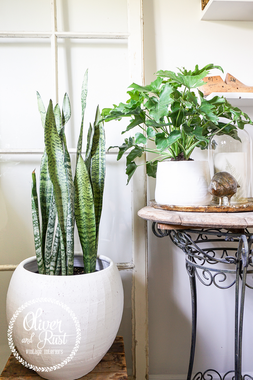 i added a modern flat white pot with snake plant and moved the green plant shelf to the other side of the planting table.
