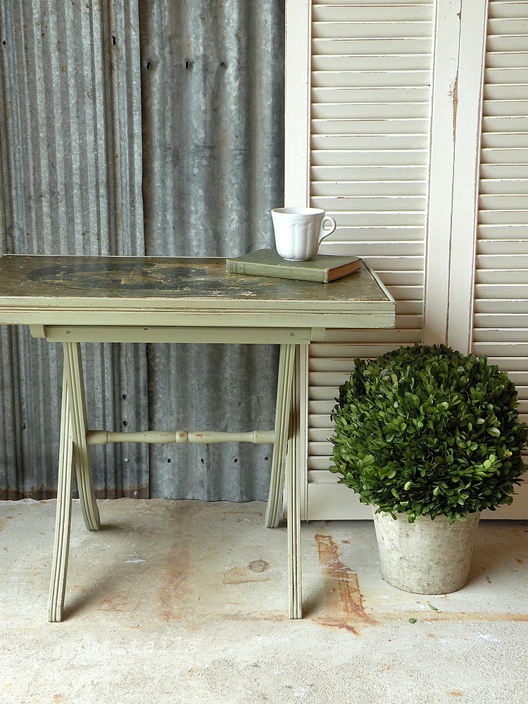 A mix of chalk paints and this lovely table is ready for a new life as a side table.