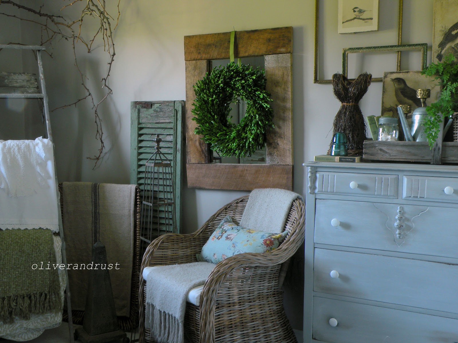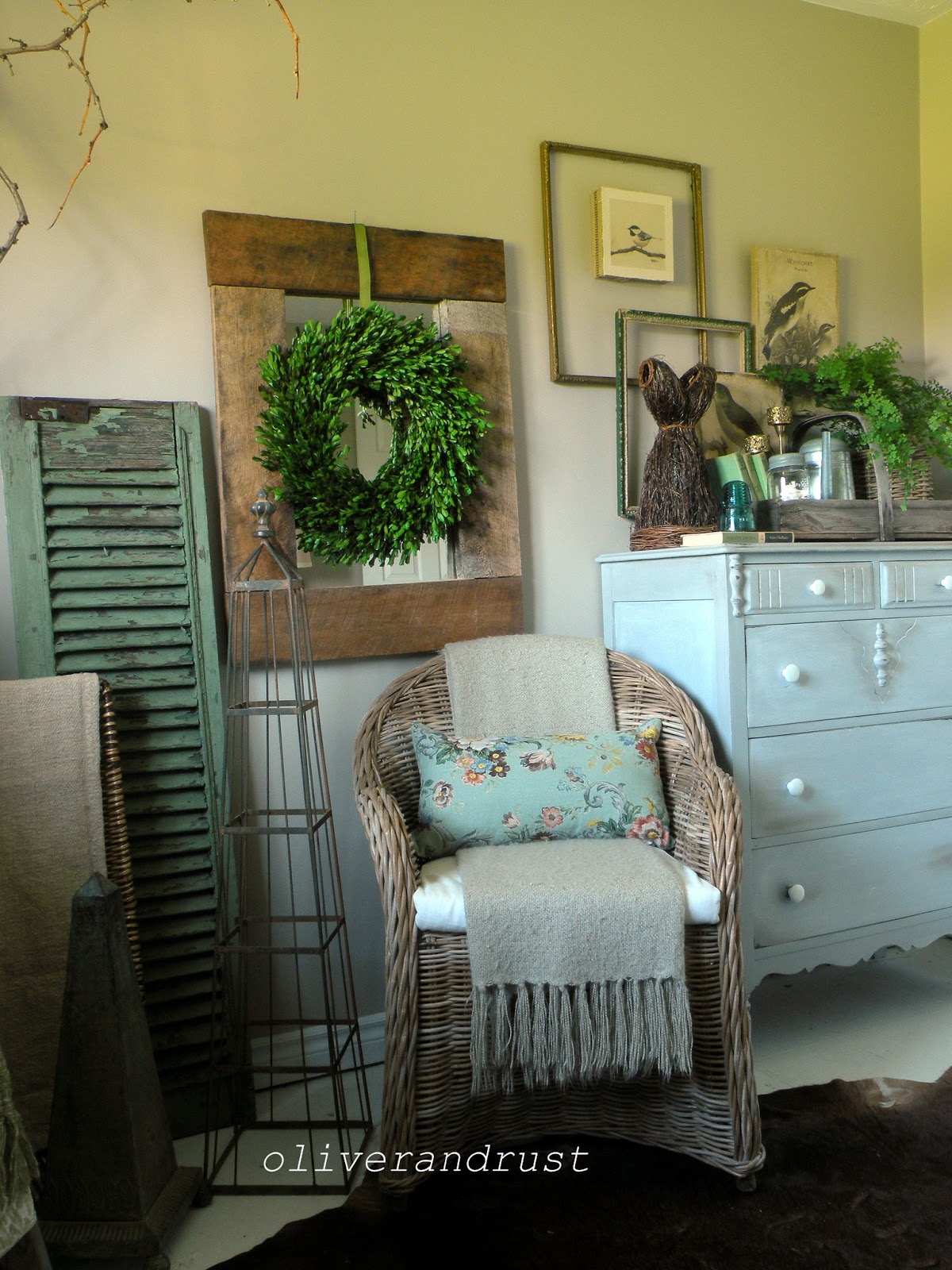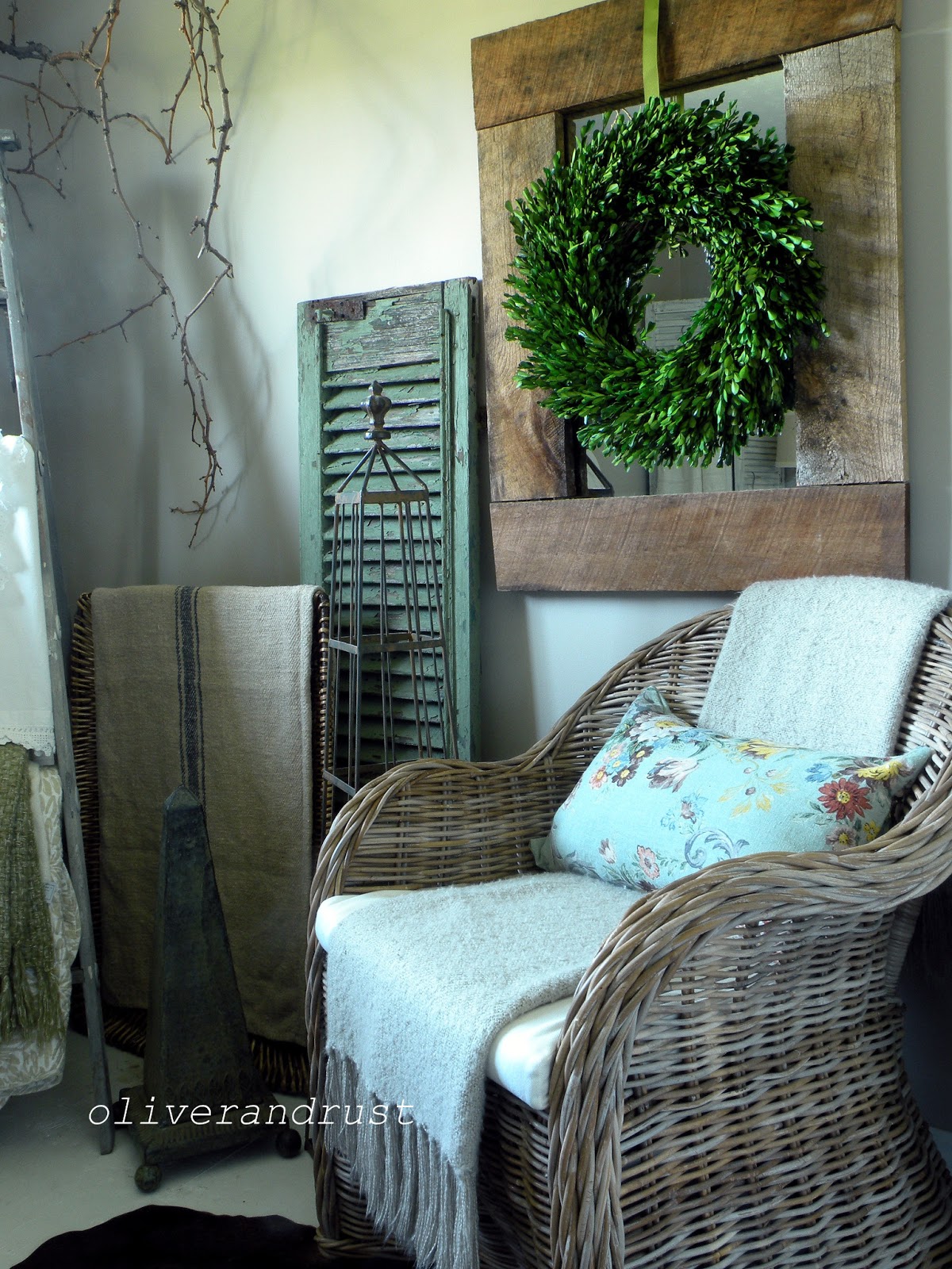 The green shutter by the chair is a recent acquisition from Hudson, NY.