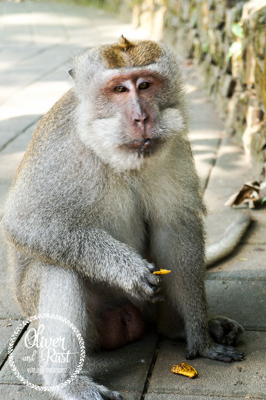 The monkey forest is really a giant forest sanctuary where the monkeys live and you pay to go visit them. They are free range and quite often come out of the forest to sit on the road, use the water fountains, and/ or swipe things out of vendors shops.