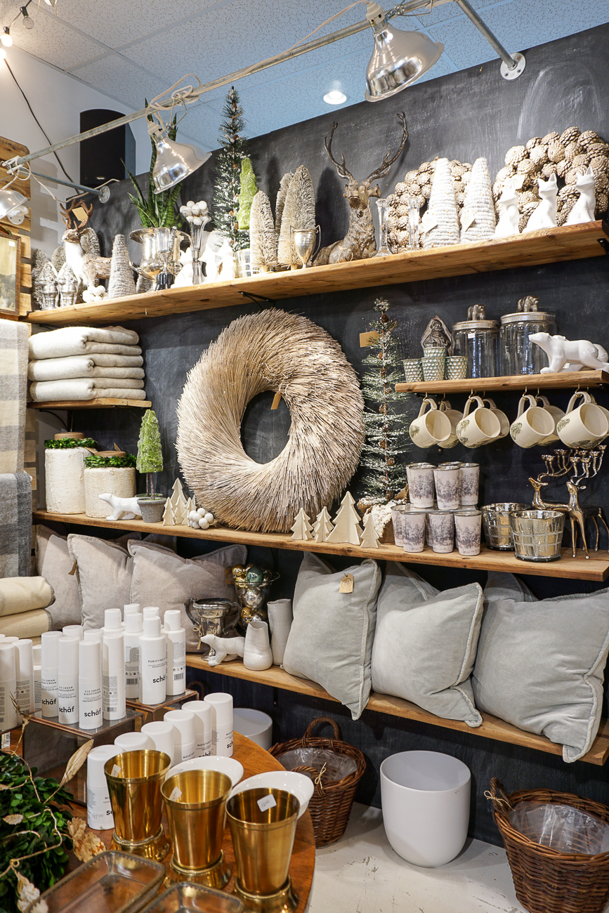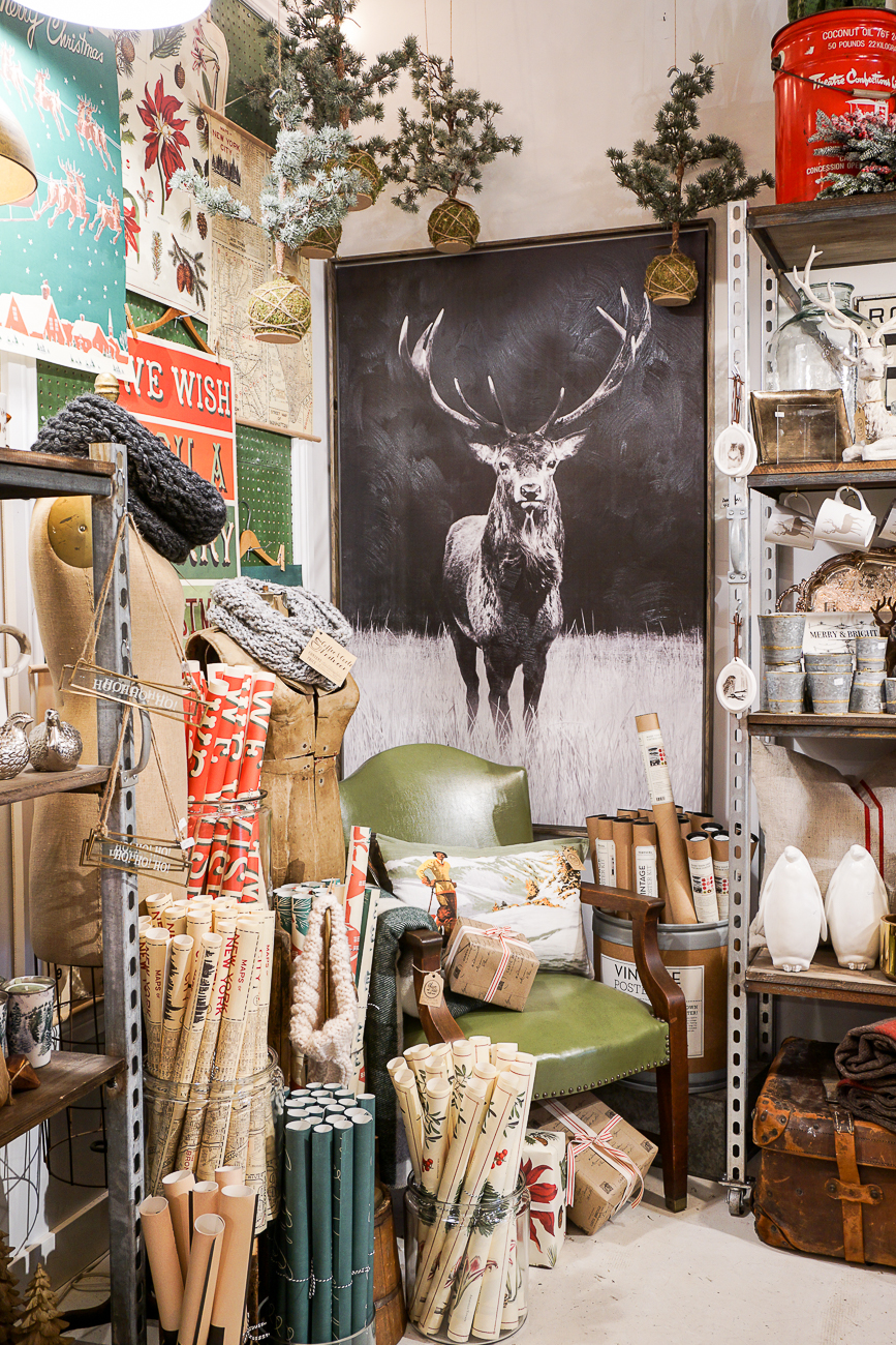 That magical time of the year is here. The time when everything that sparkles and glitters is upon us. The preparation for family and friends has begun. Getting the house all decked out for the season and adding the new bits you found at all the beautiful open houses. While the shop has been decked out for the holidays since the beginning of November and these pictures were taken awhile ago I am just getting around to posting them now. Enjoy your tour of my little piece of heaven all decked out for the season. My inspiration for this year of course started with the colour green and plants and was a more natural woodland Christmas. We invited a whole host of deer to join us as well as a *few* elves in all of their holiday finery.