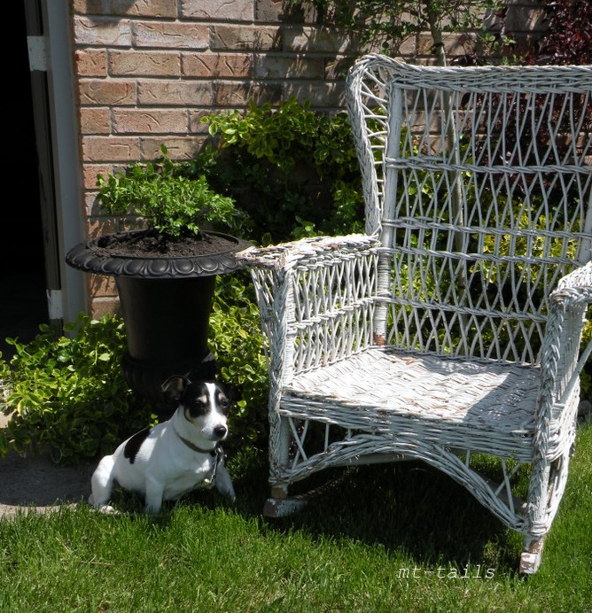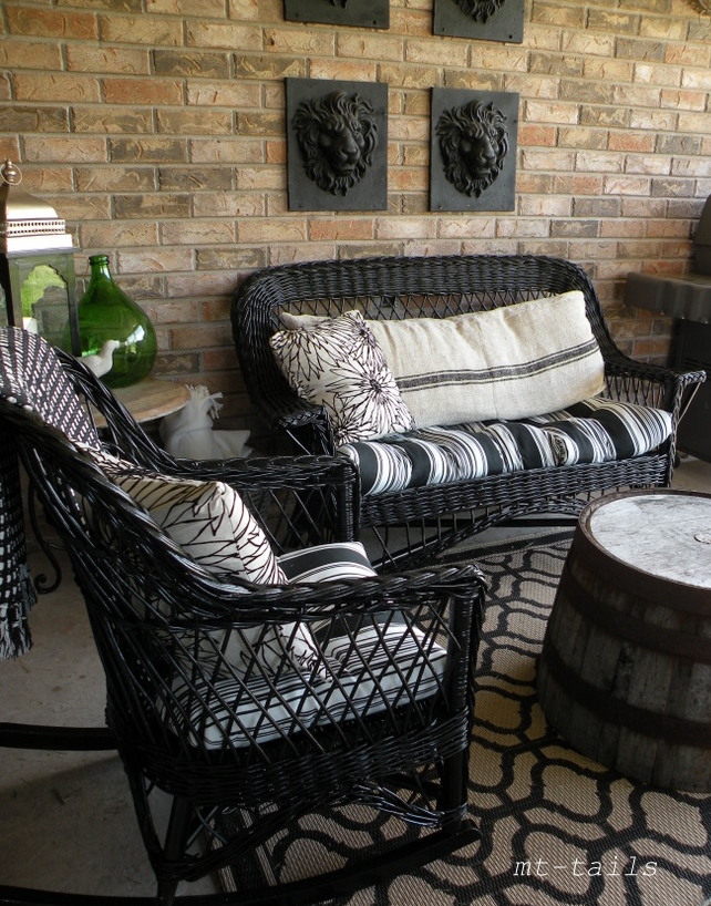 A couple of weeks ago we had a major spring hot spell and boom out came all the patio furniture and the rearranging/inspiration demons took over my brain. Of course, then it grew winter cold again for a few weeks and the patio just stood still in a mocking way. I knew I wanted another comfy seating area in addition to our table this year so, back to the Kijiji drawing board. A vintage wicker set.....hmmm......