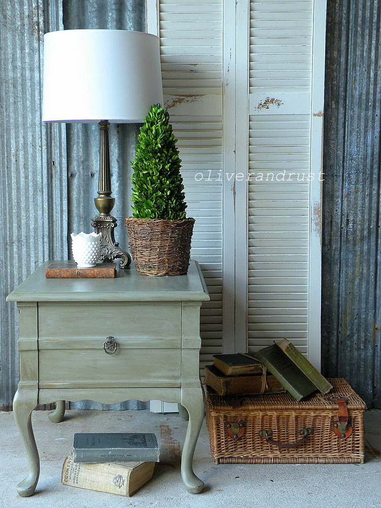 This table was finished in Annie Sloan Chateau Grey and then I used General Finishes Van Dyke Brown glaze. This was my first stab at this glaze and I enjoyed the use and the finish it gives. You do have to work fast and in small sections or it will dry up into a globby dark mess.