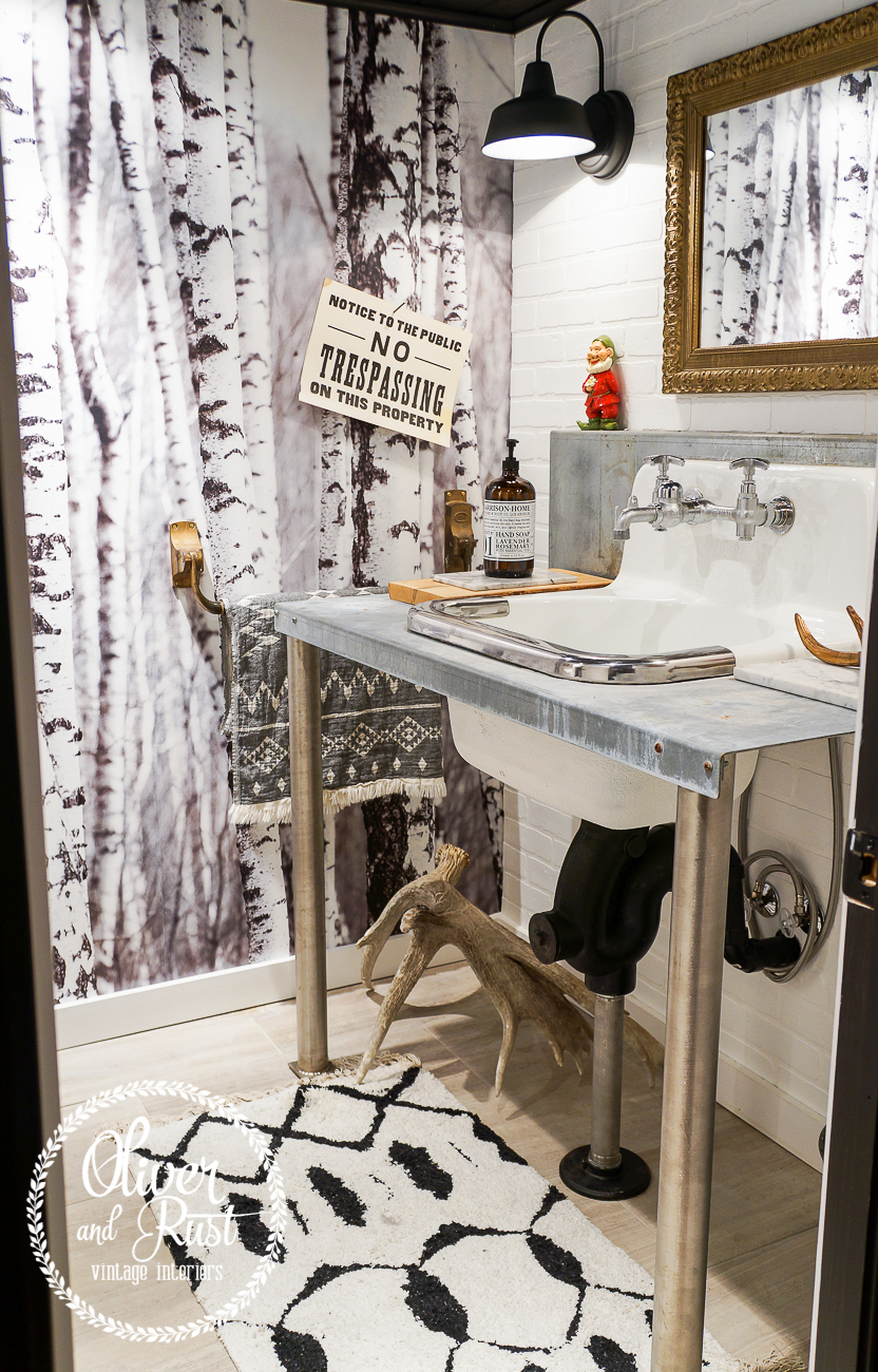 My brain did not see a builder basic bathroom down here and trying to explain my vision got a few confused looks from people as we were going about the process. The hardest part finding a sink that we could use and that also didn't cost 1200.00 bucks.
