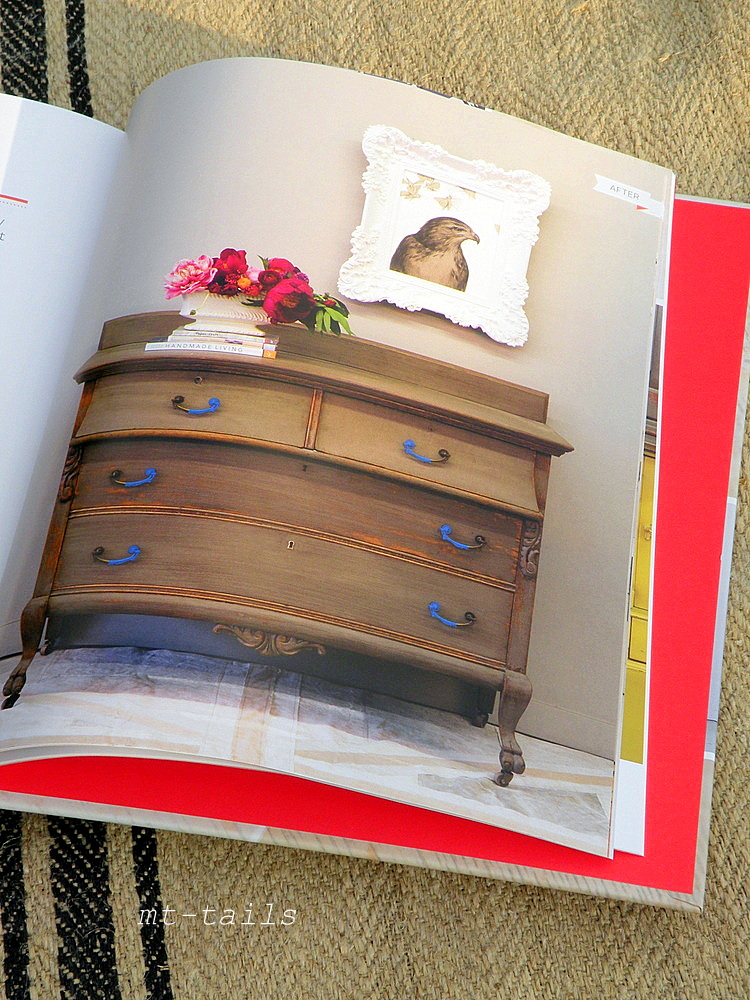 There are many photos of pieces in different stages of completion and many styled up to go to their new homes. I love the huge glass knobs on the piece
