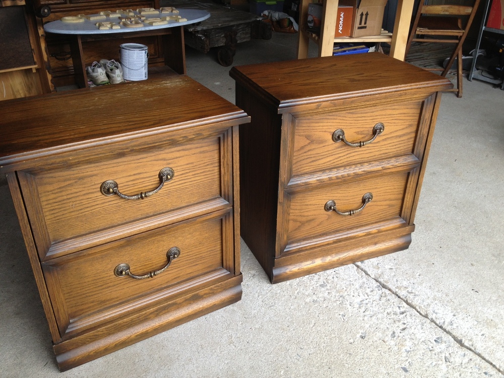 These babies were your classic yucky yellow wood with gawdy handles in a nice older gentlemans garage covered in a foot of dust. The bonus was solid wood with nice dove tailed drawers.