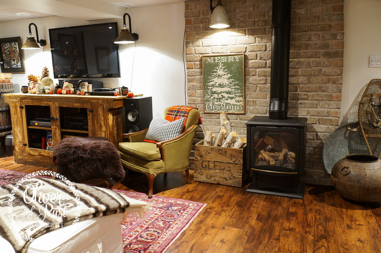 Down the stairs from our front hall and into our relaxing underground space we go.