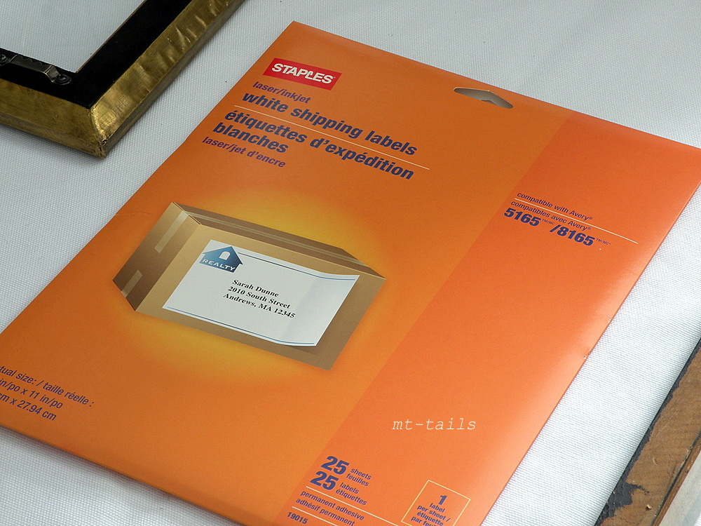 I use full size shipping labels stuck to the fabric and cut out to size.