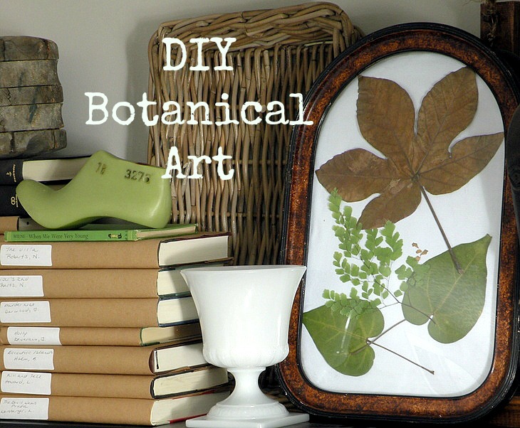 In the quest for greenery and the need to put some leftover reindeer away, I decided to use some of the leaves I have been pressing with my bookpress and make botanical art for our home. I collect interesting leaves wherever we go from walks to vacations and put them in a huge book in an antique bookpress in our living room. I remember everytime I picked up a book at my grandparents house, four leaf cloves wrapped in wax paper would flutter to the floor. I guess I picked up the habit.