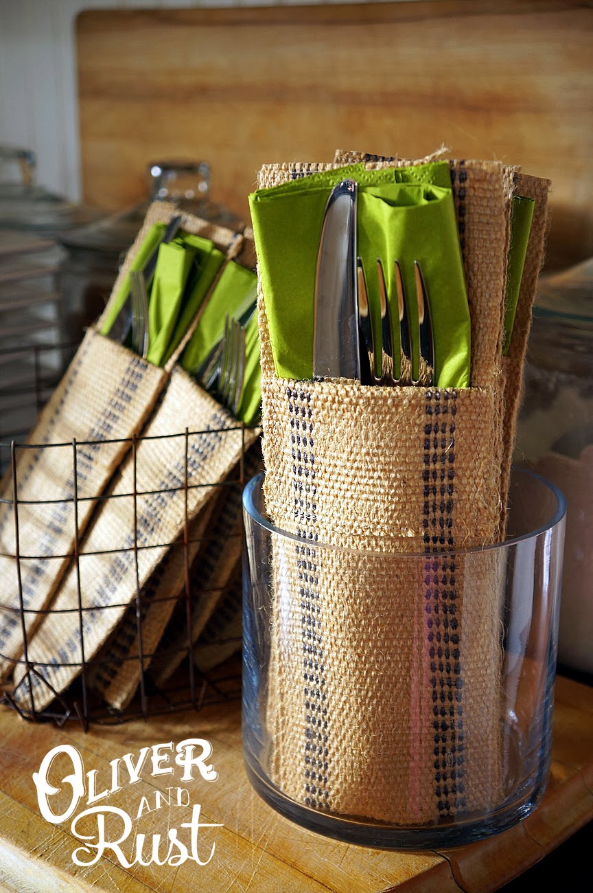 plates and cutlery were setup in one zone and the line moved around to the dining room. i used my homemade cutlery holders with folded up napkins to make it easier to pickup your utensils and not try to balance plates, forks and knives etc.