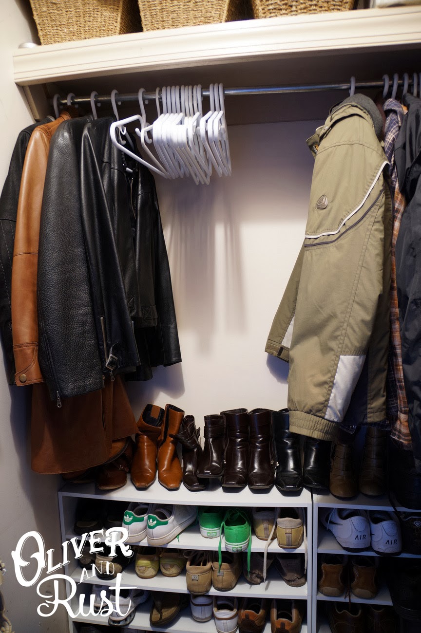 this one probably should have been at the top but who wants this to be the first photo on a post. make space in a main closet prior to guest arrival with plenty of hangers for coats. move some of your own coats to a bedroom closet for the day and allow guests to hang their items and retrieve them at the end of the party without hunting through a huge pile of coats and dumping others garments on the floor in the process