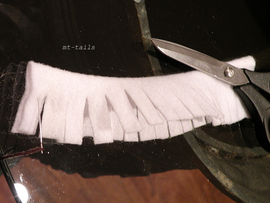 cut out a circle of felt. cut that circle in a circle pattern.