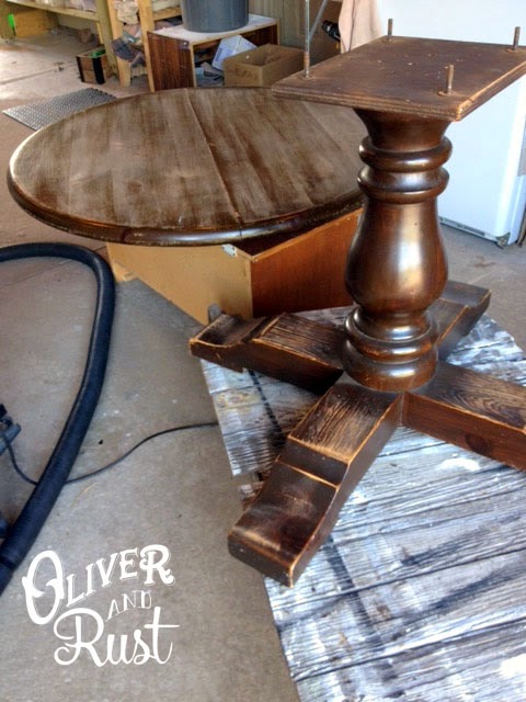 I found the table at a thrift store and loaded and unloaded it into our truck myself on my lunch hour. It isn't light, I was dying.