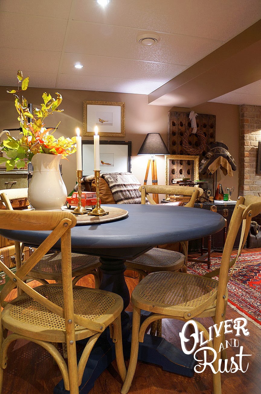 Now if you have followed this blog for any amount of time, you know I do not love blue. It is not my favourite colour by a long shot. It's down there with pink and orange. I mostly feel this way about sky blue but, when I saw the original product shoot for Miss Mustard Seeds then new Artissimo milk paint it was like being in the V8 commercial and being hit in the head. I knew instantly that it would be the perfect colour for a table in our basement to blend into the persian rugs and still look neutral.