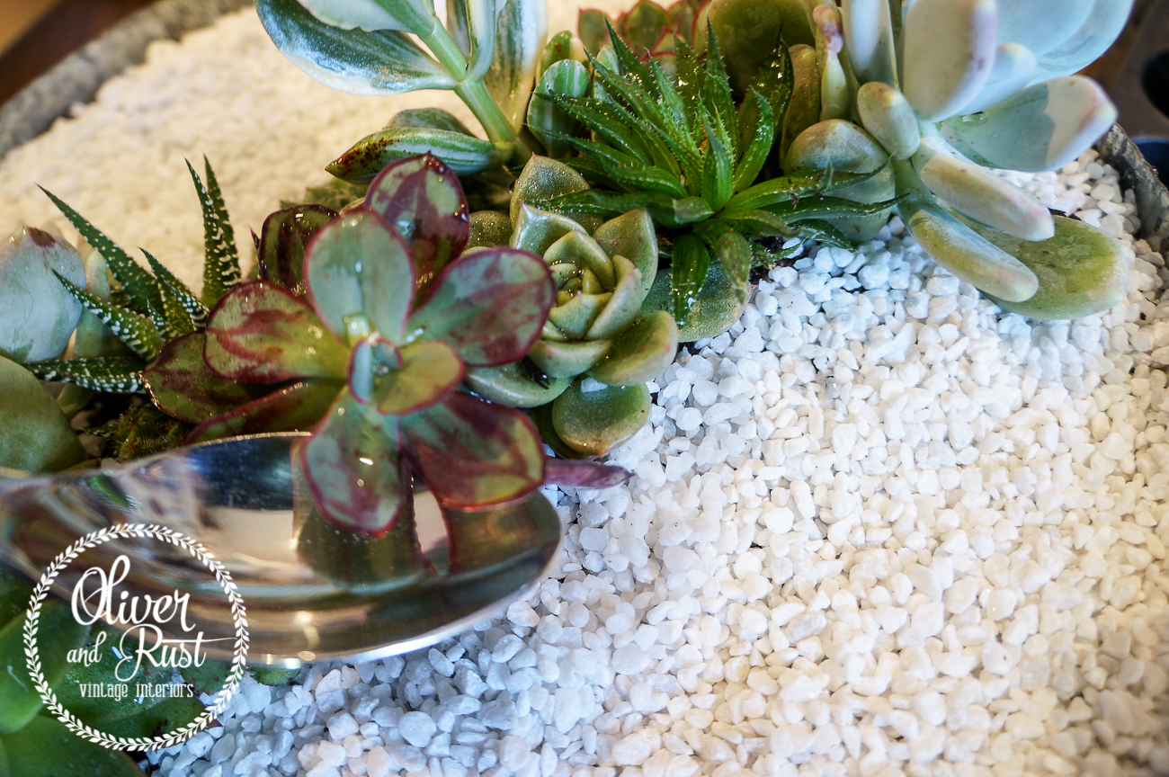 gently line up you succulents so they are nestled in tight to one another in your desired pattern, i choose a straight line knowing i wanted a more graphic look once the gravel is added.