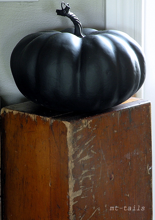 i found this idea on pinterest. spray pumpkin with flat black spray paint. creepy and neat.
