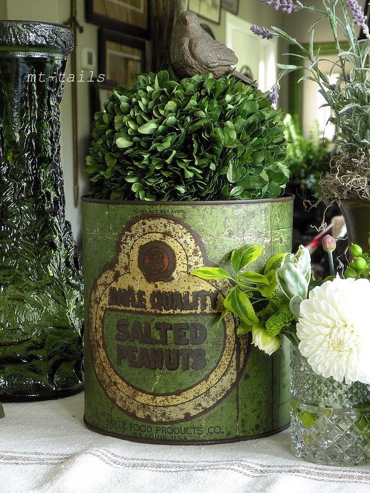 Trev and I went to one of our favorite antique shows a couple of weeks ago and I came across this awesome green dented can for salted nuts.