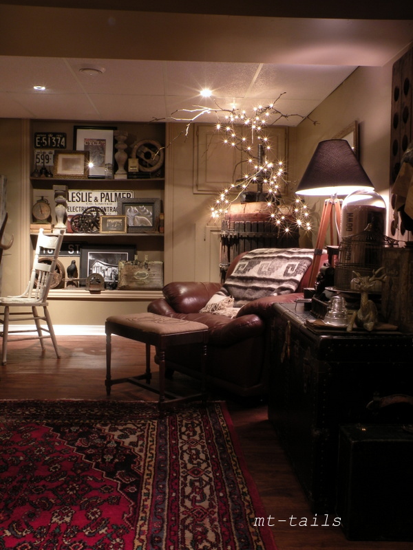 taking the Christmas tree down left a barren lack of twinkle lights, so I put up a branch with twinkly lights over the wine press to quench that urge.