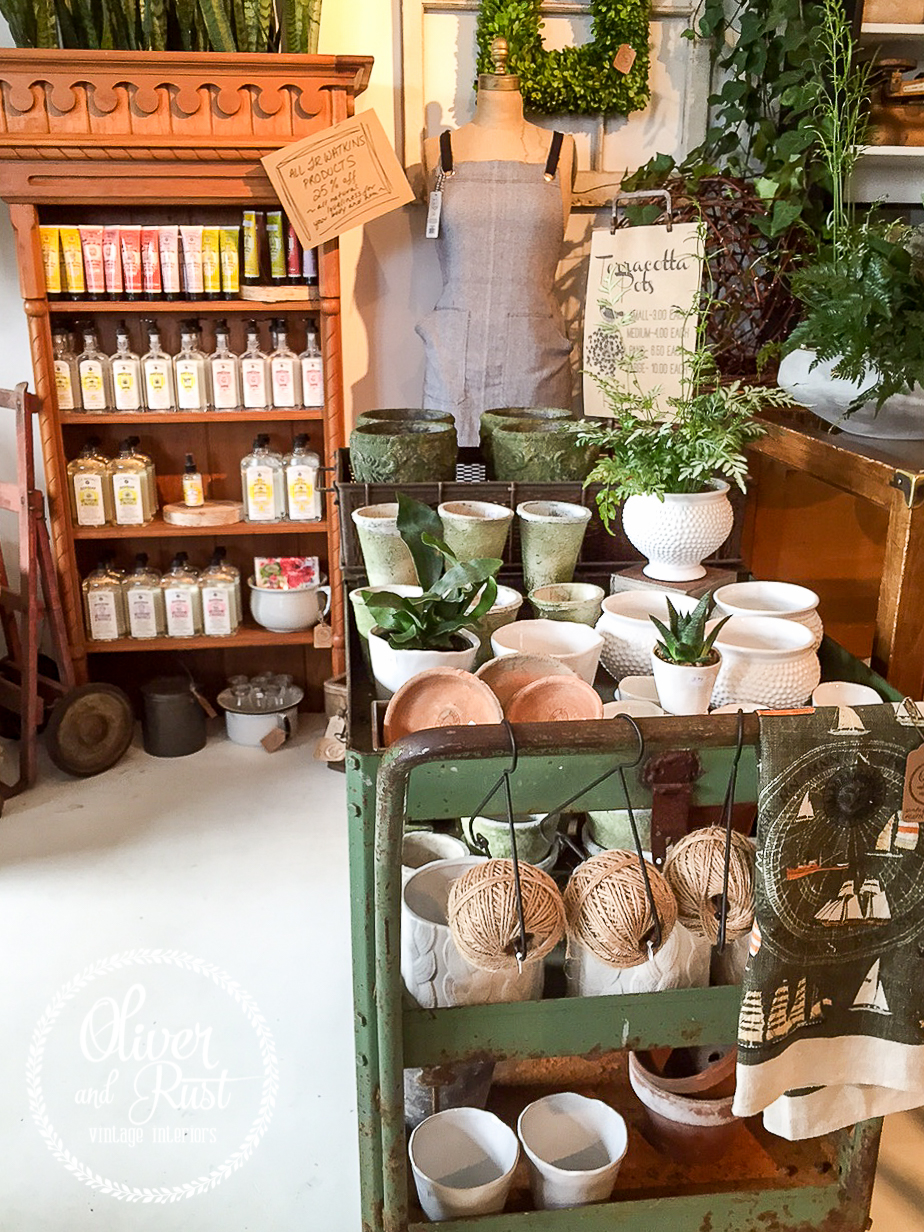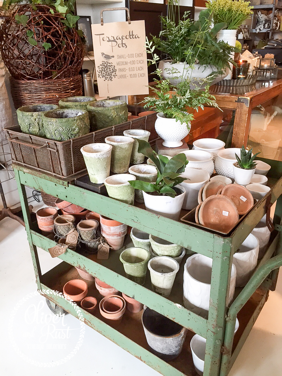 Our cart of vintage pots was starting to look so picked over after a heavy spring and summer season so it got a refresher. Like toned planters, vintage and new, tiny medium and large to make planting up your favourite plants a cinch.