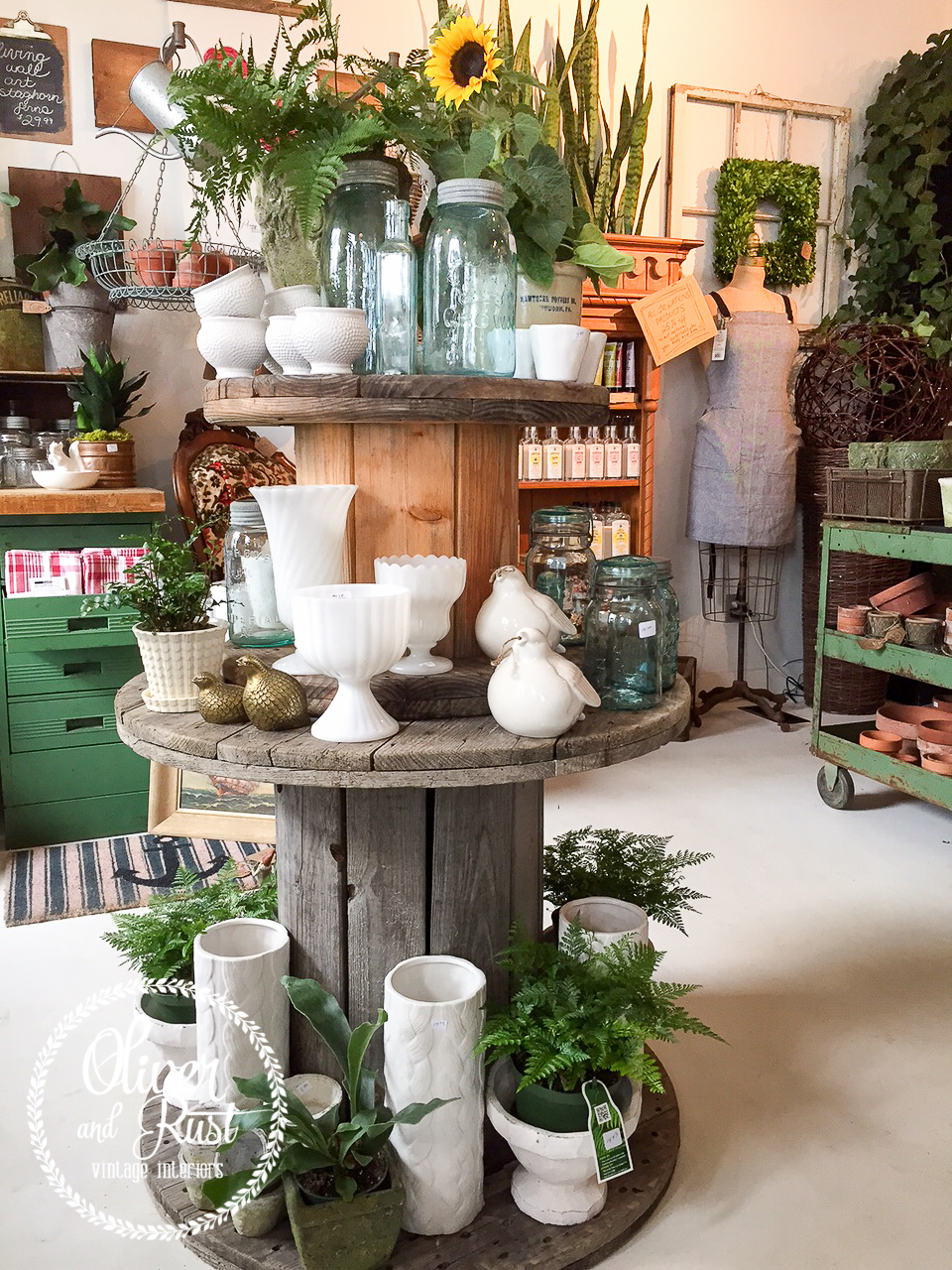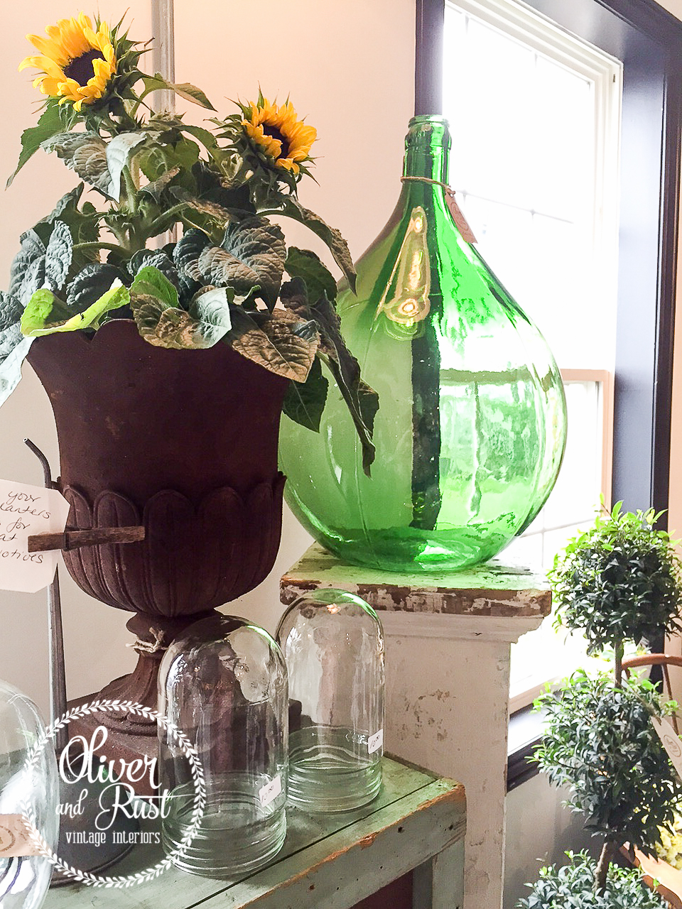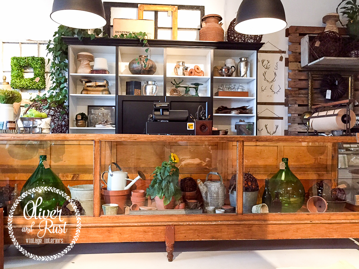 I also attacked my counter. This counter gets so much attention and every time I put a new demijohn inside it sold. Awesome but I have to take the top out of the counter when that happens, so smaller items that fit through the back doors were in order. Kind of a pre autumn, gardening with bottle theme.