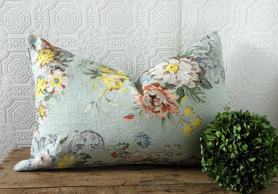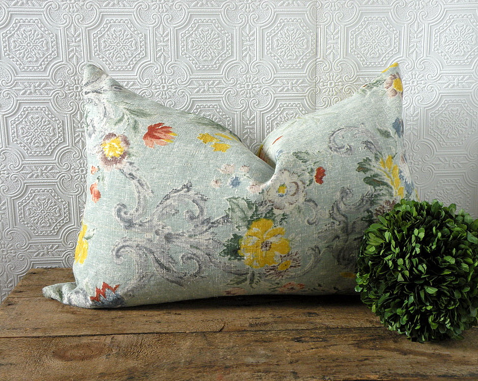 The first one was this amazing blue irish botanical linen. It is so pretty it makes me want to add more blue to my house. Almost. I did add some of this in our bedroom though.