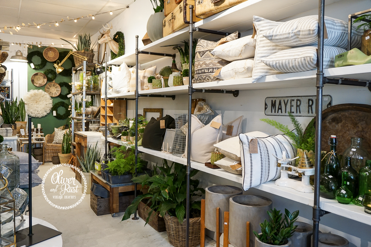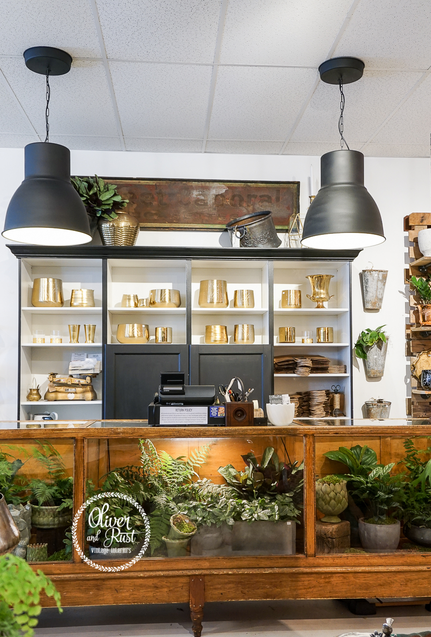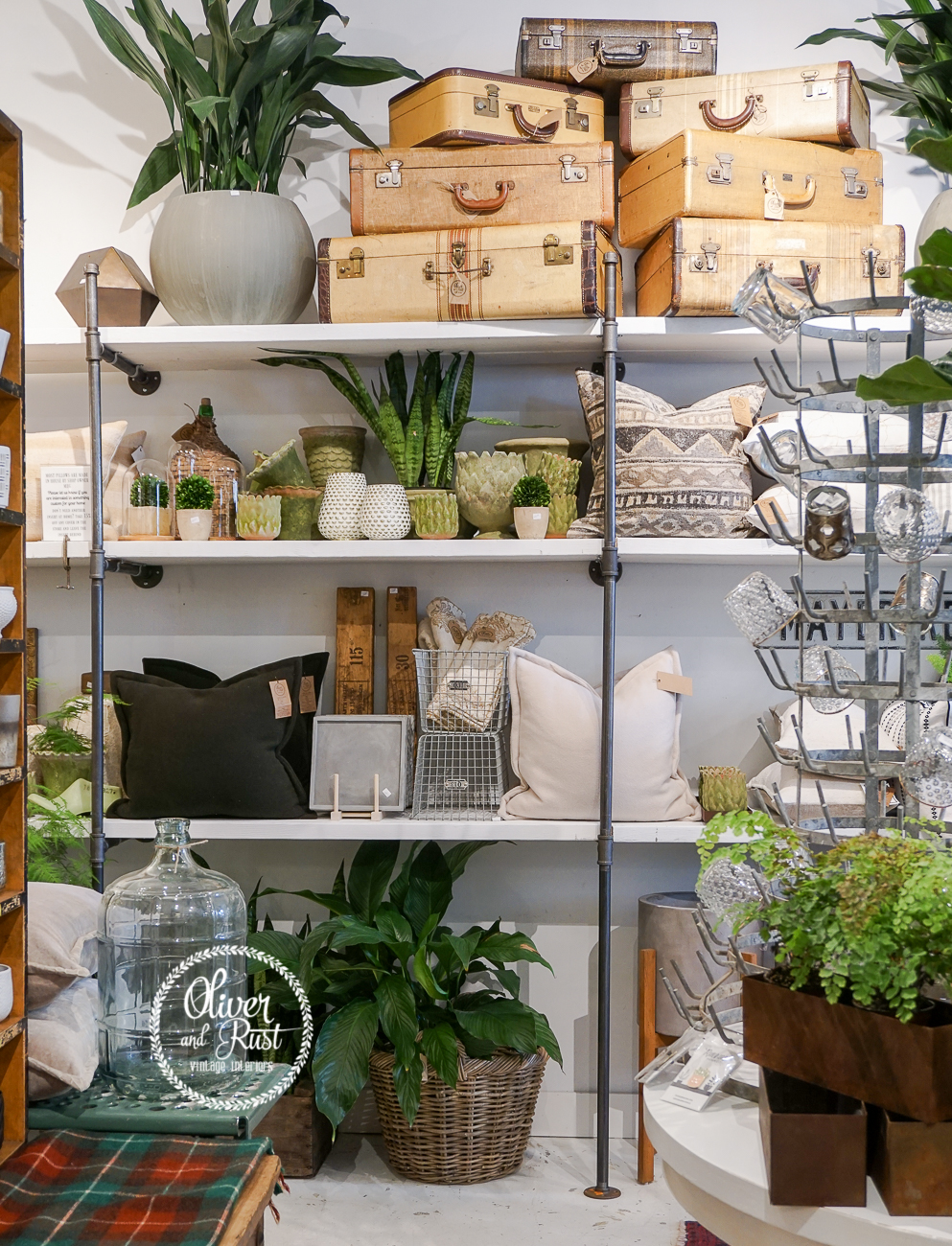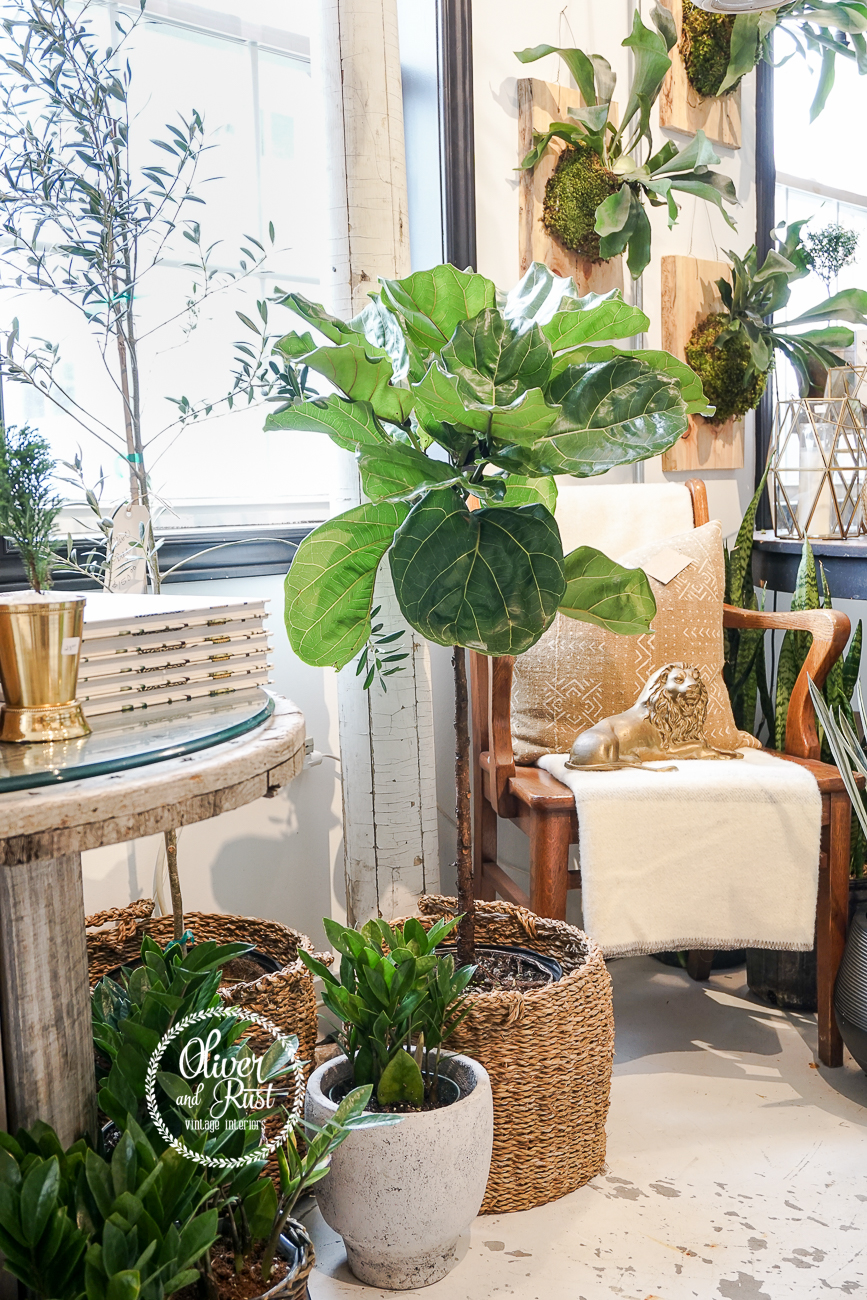 I saved this photo for last. It's a wide angle view of a good portion of the front of the store. It encompasses everything about how I want my store to speak to people when they come in. We have plants, pots, vintage and new, a bit of eclectic and a bit of polish. There's rough and refined and it's blended together to help you think outside your comfort zone and find that perfect piece for your home. Because being at home in YOUR home is what I'm selling. The idea of comfort, the feeling of pride and making your space work for your life.