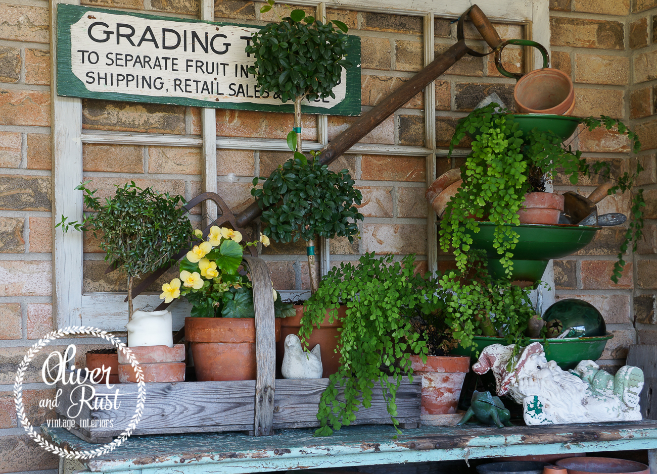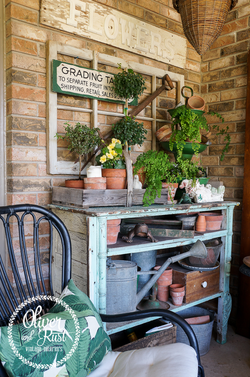 the vintage can back there by the watering can holds all franklins toys when he isn't using them.