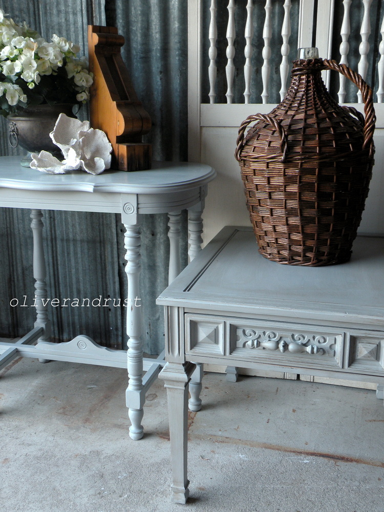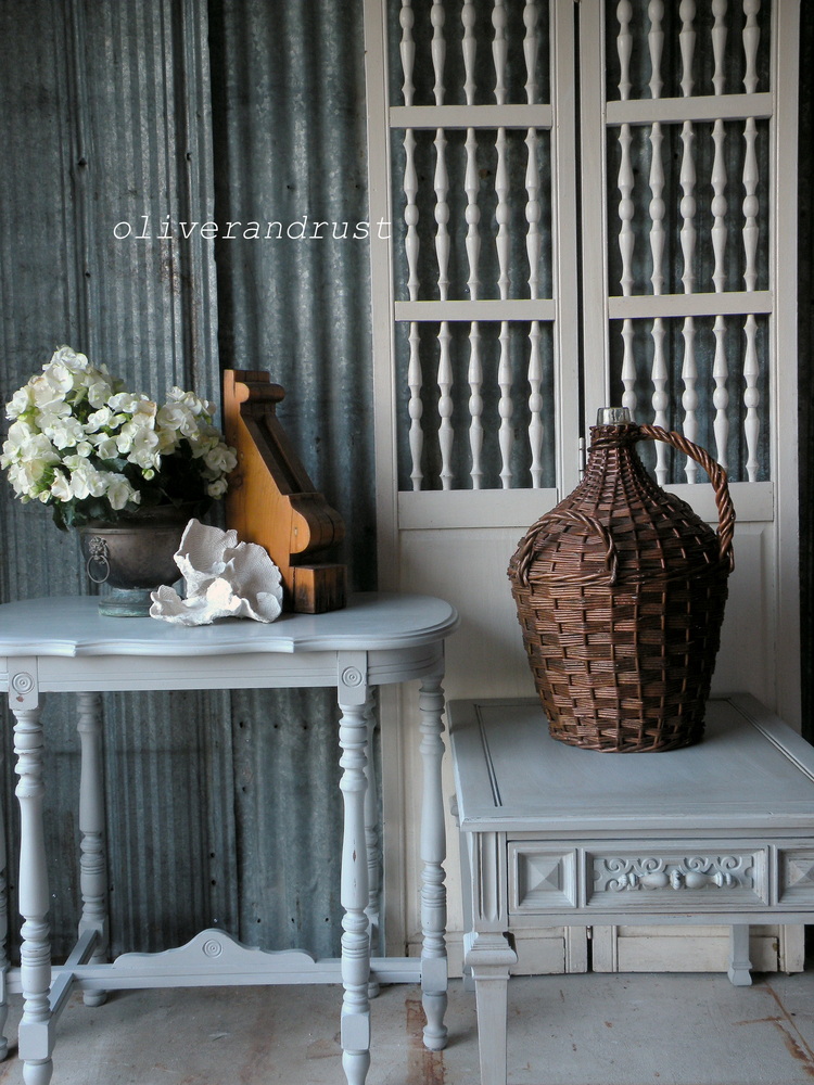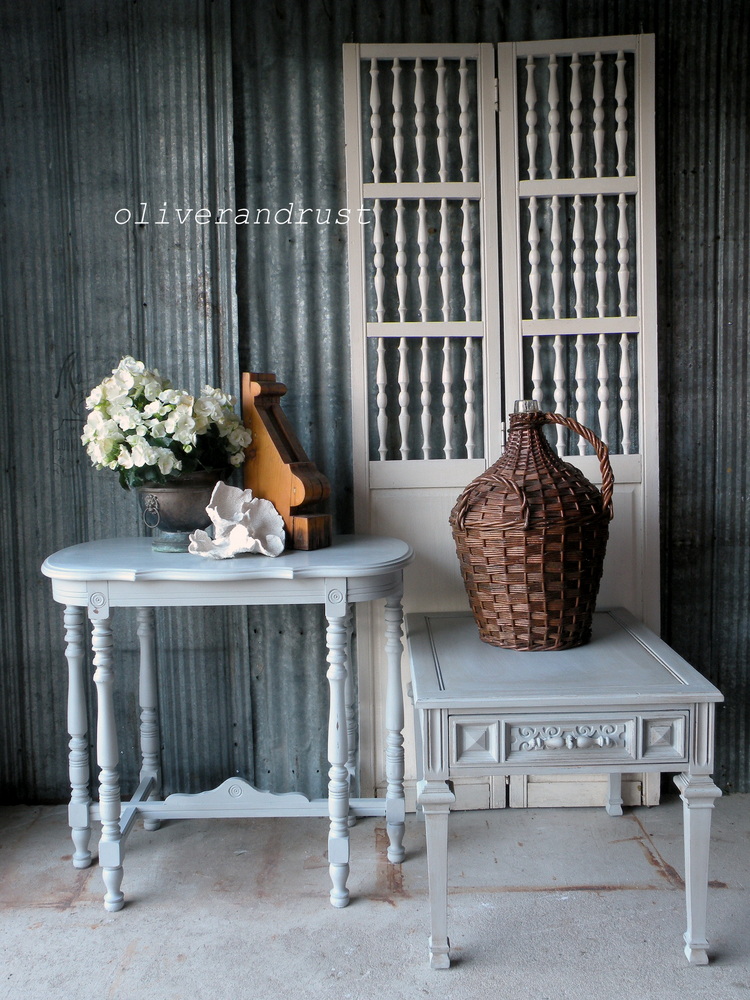 I put these tables into one (multiple views) photo op so the difference although subtle can be seen between the colour the paint comes out of the can and a dark wax altered one.