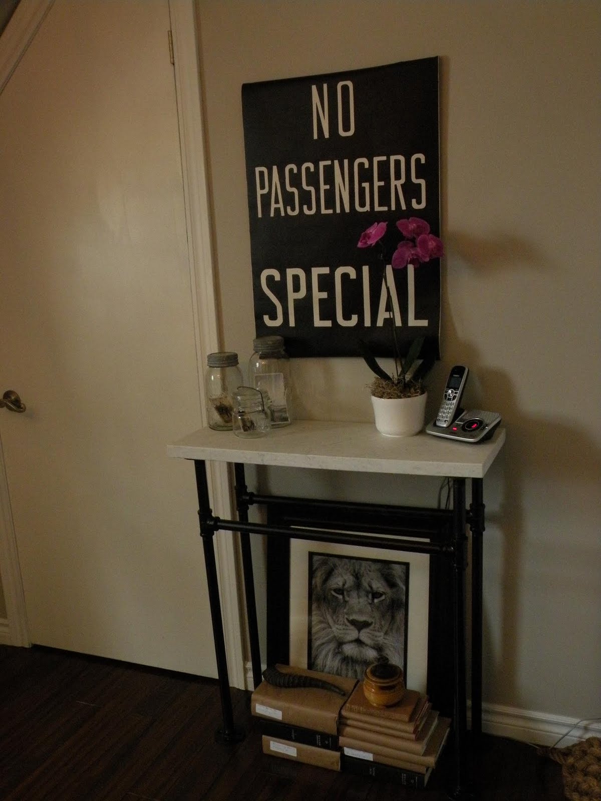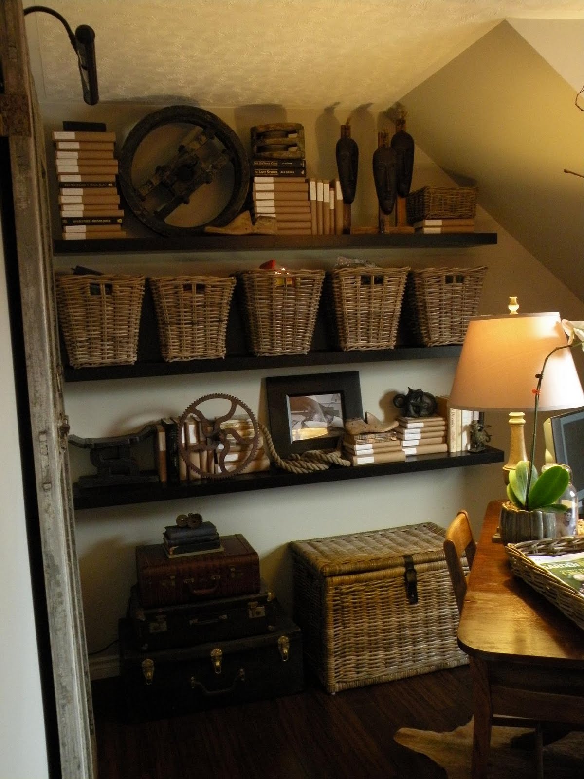 After about 1 million computer complications, many months, many temper tantrums, my little blog returns. Lots of great outdoor projects on the go but first, what I've been up to the last few months. Last October I did a major revamp of my office/workroom. I (by "I", I mean my wonderful father) painted over the dark blue that came with the house with a wheat gold leftover from our living room. The color wasn't working out for me and the destroyed rug was still exhibiting some funky unmentionable smell from the previous owners. Therefore, the first room to be repainted during our ownership to Benjamin Moore's Revere Pewter. My hubby and brother installed dark bourbon bamboo flooring to match our bedroom.