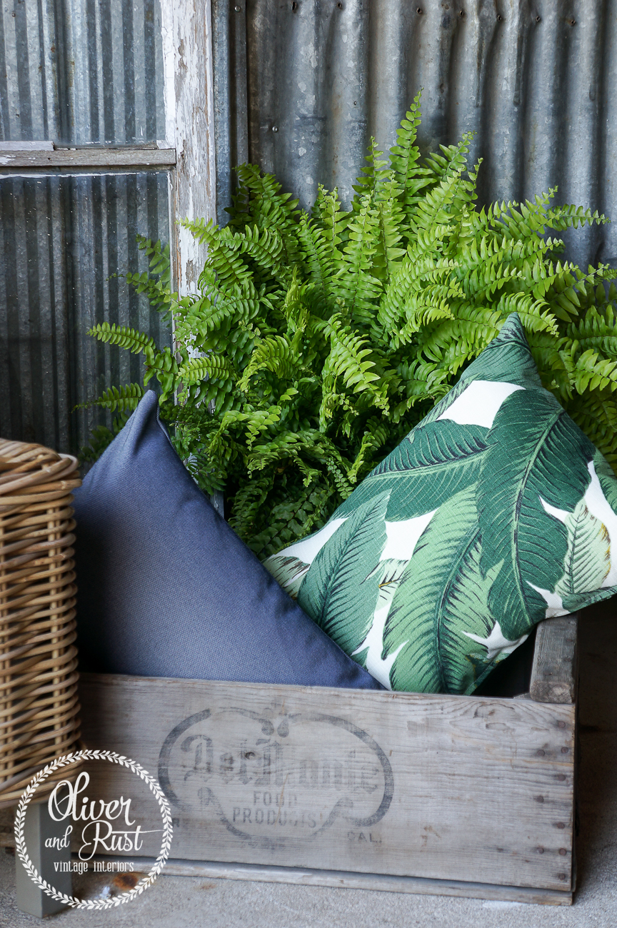 tommy bahama swaying palms outdoor and outdoor denim look alike. it looks pretty close to the other pillow no? i really love the neutral outdoor fabrics i found for this year.