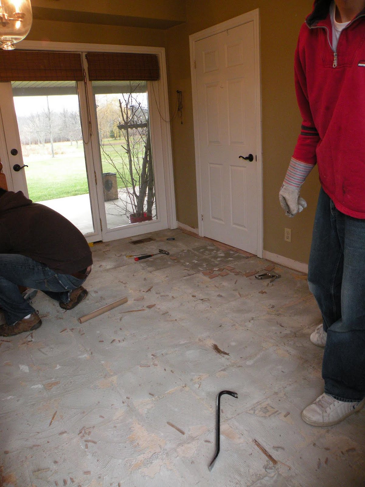 This picture and the following one show the previous owners posessions but, give a good idea of the space and the tile that was removed.