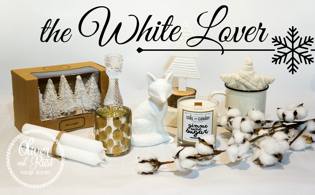 maybe your white lover is also a plant lover. birch pots are excellent this time of year as they look festive but can translate to winter and then even summery cottage later on. fill with favourite seasonal plants and voila.
