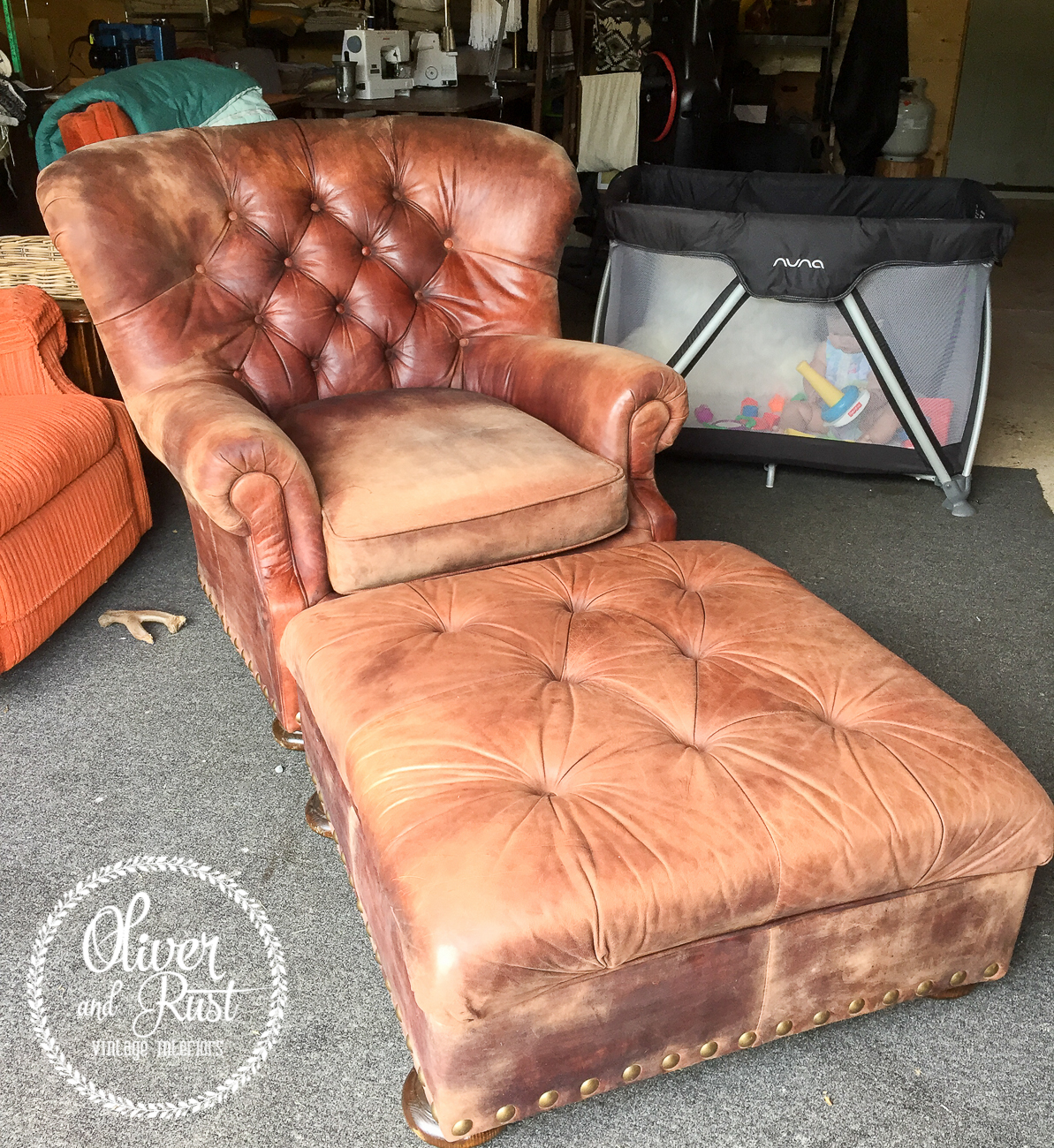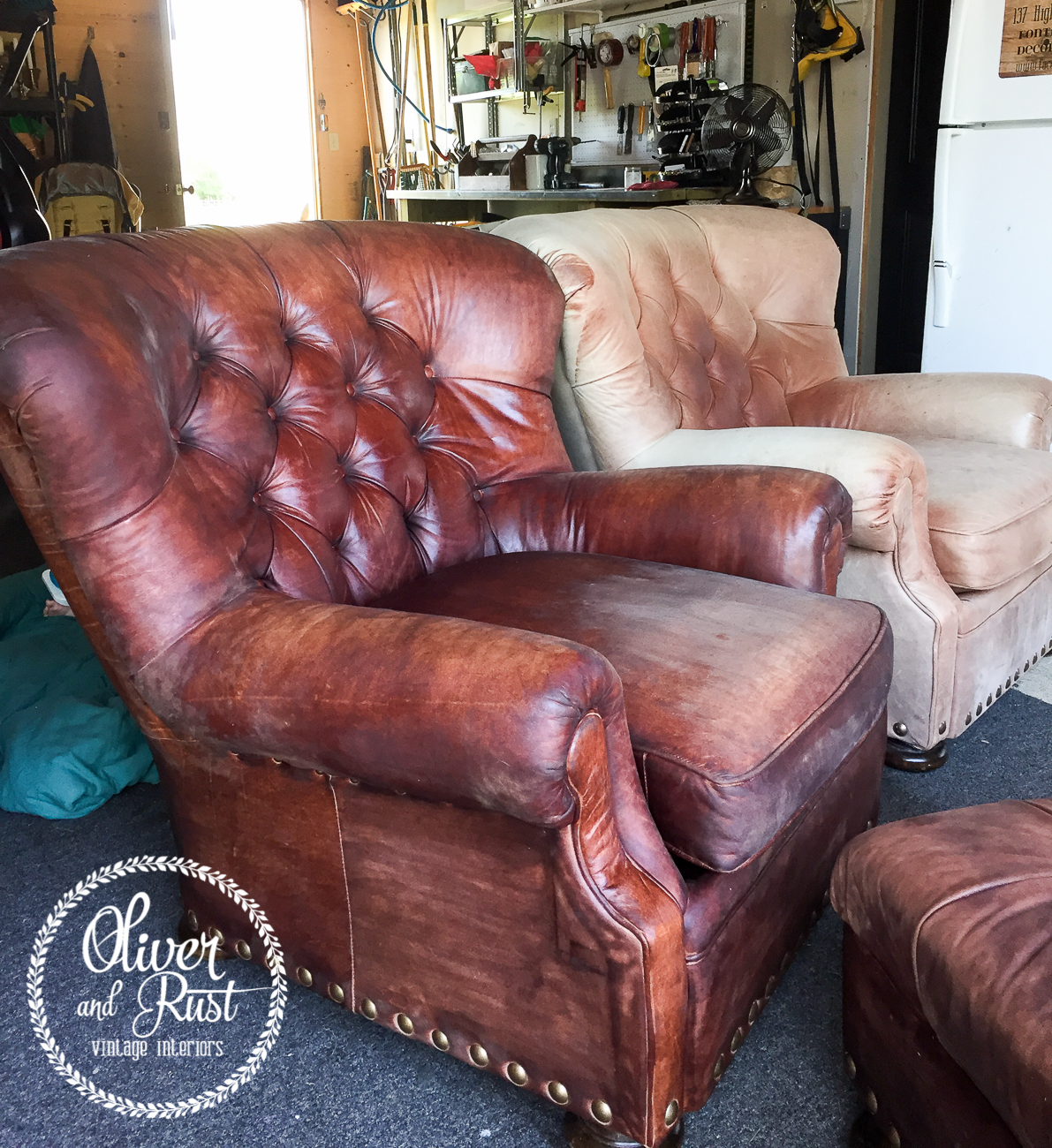 I came across a pair of leather chairs on Kijiji and after a complicated pickup conversation that included long lulls of "do you still have these?" "when can we come?" the chairs came home with us.
