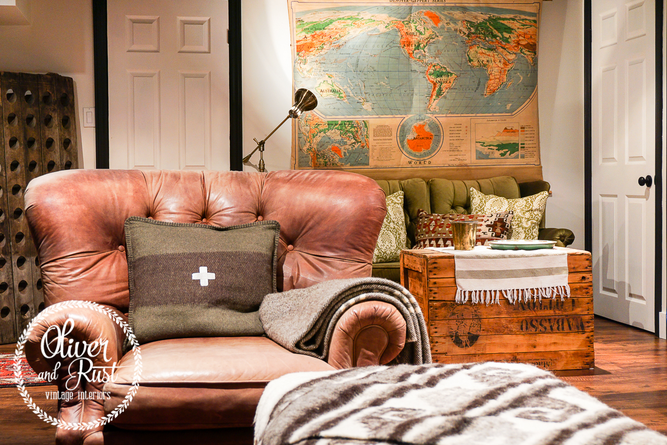 and if you'll remember, i said i was buying these chairs for the shop but because of their size they wouldn't fit through our limited front door [another oops] so with a lot of moving and shaking and the plan already in place to replace our sofa upstairs these chairs made a home in our basement.