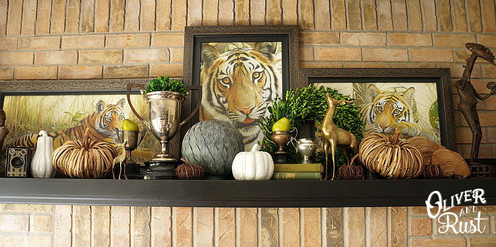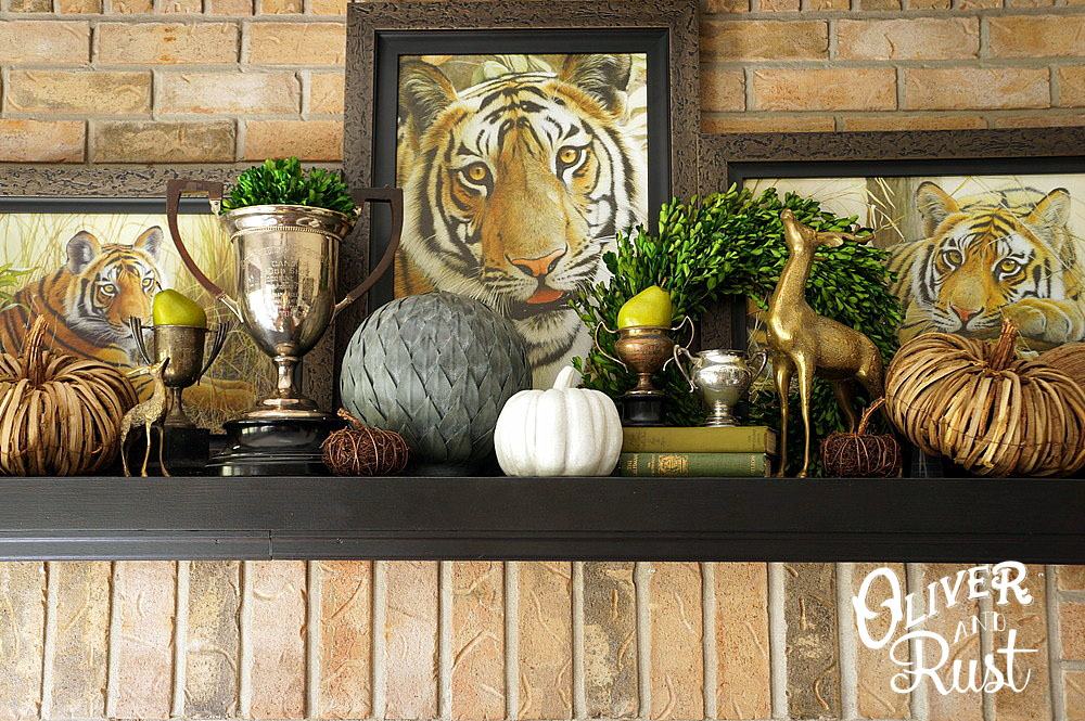 I deliberately left the closeup shots of the mantel out of the main floor fall tour yesterday.