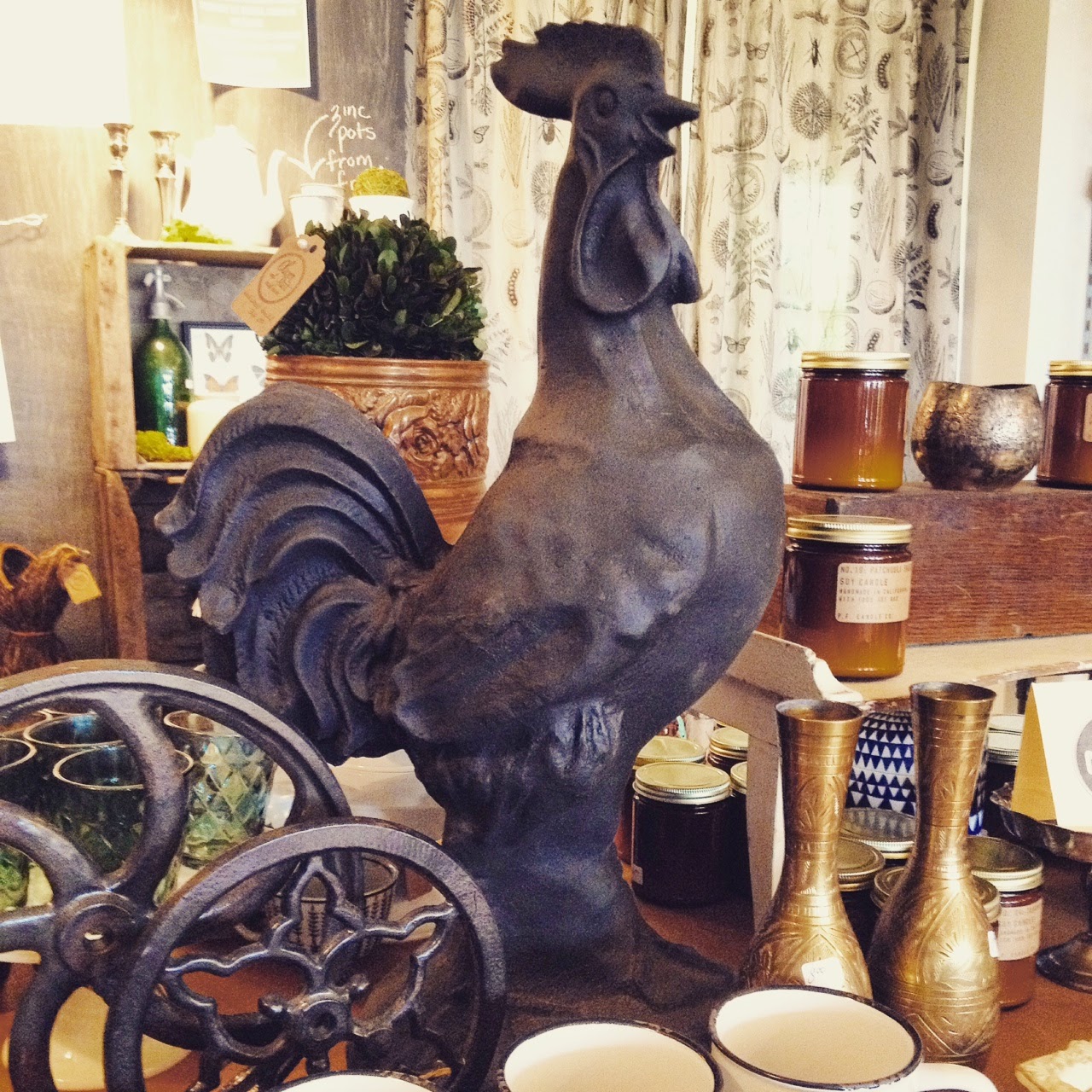 some amazing new cast iron pieces. this lovely rooster who i think deserves a name he is so fantastic. there are some new pots, trophy style urns, artichoke, and those great white rabbits that hopped away in no time the last set i brought in. perfect for that little piece of something to add to the garden this long weekend.