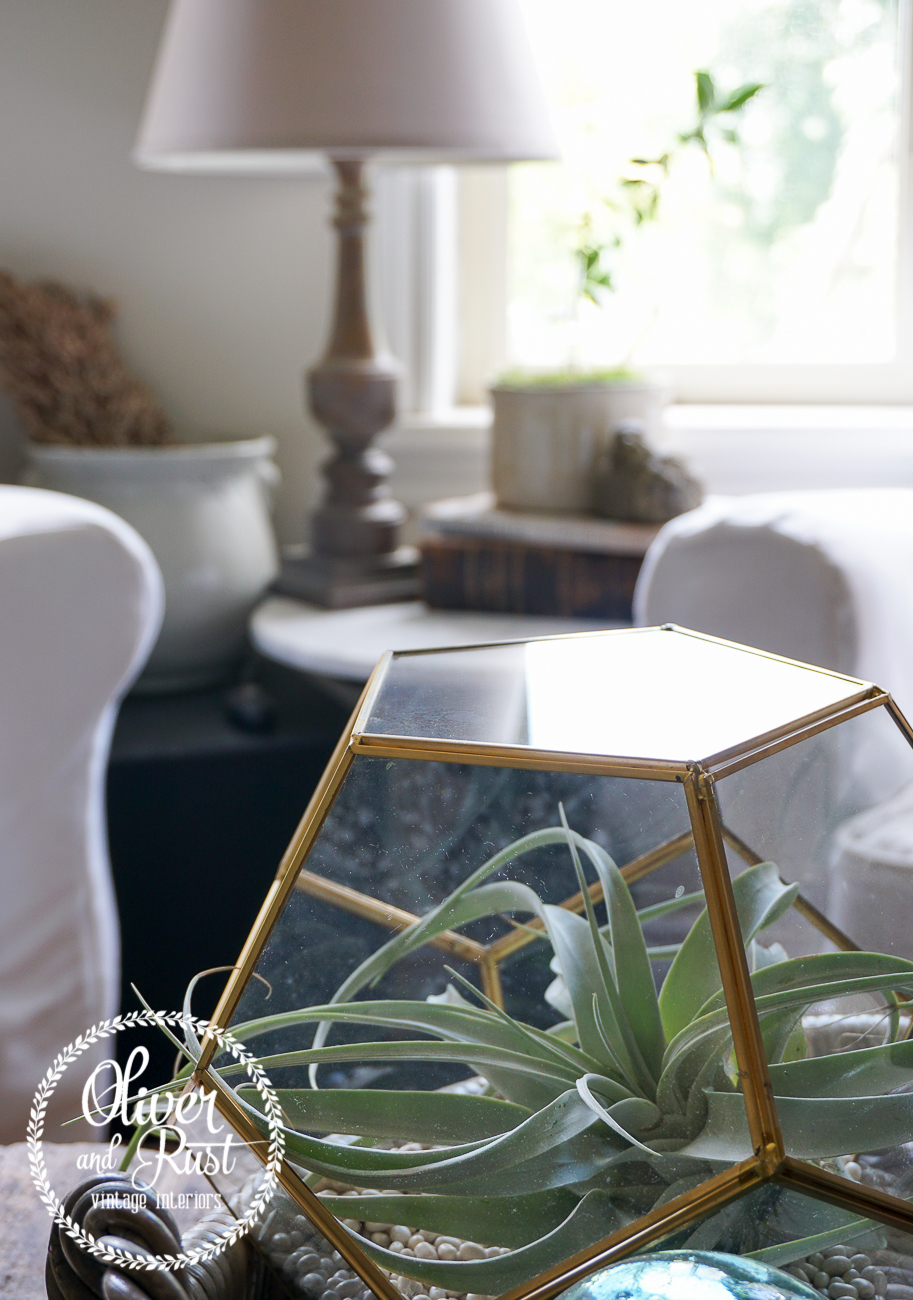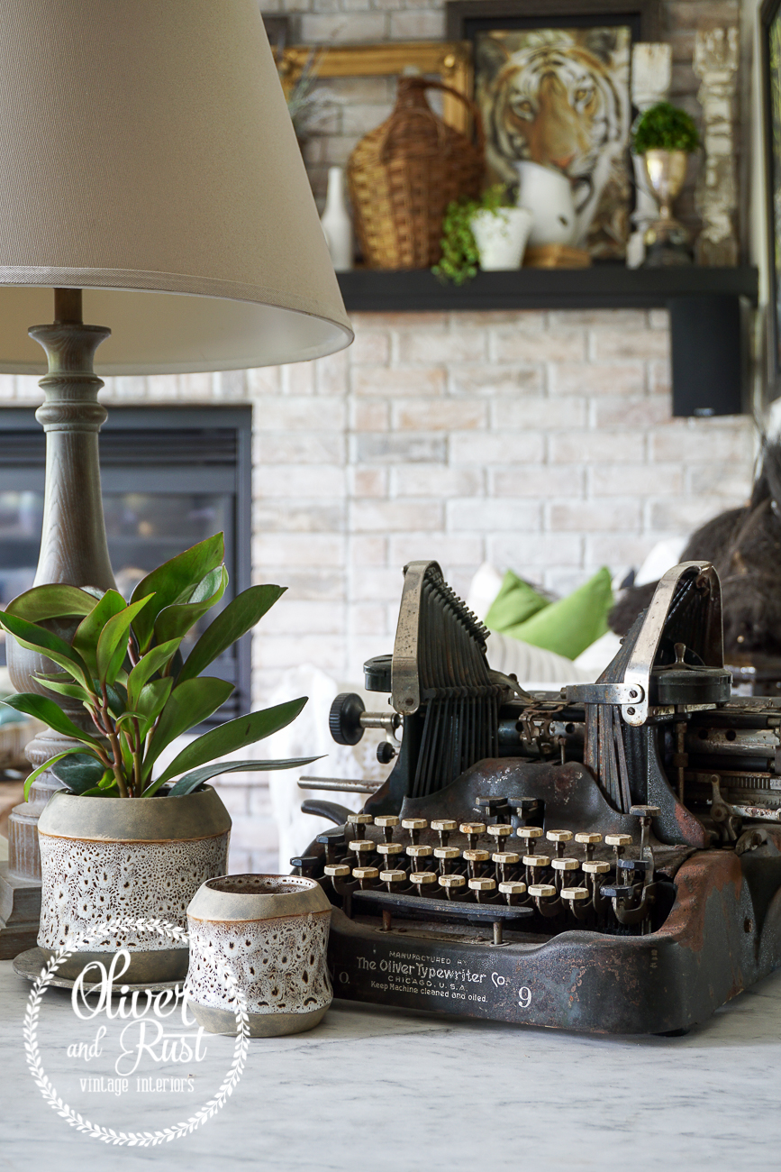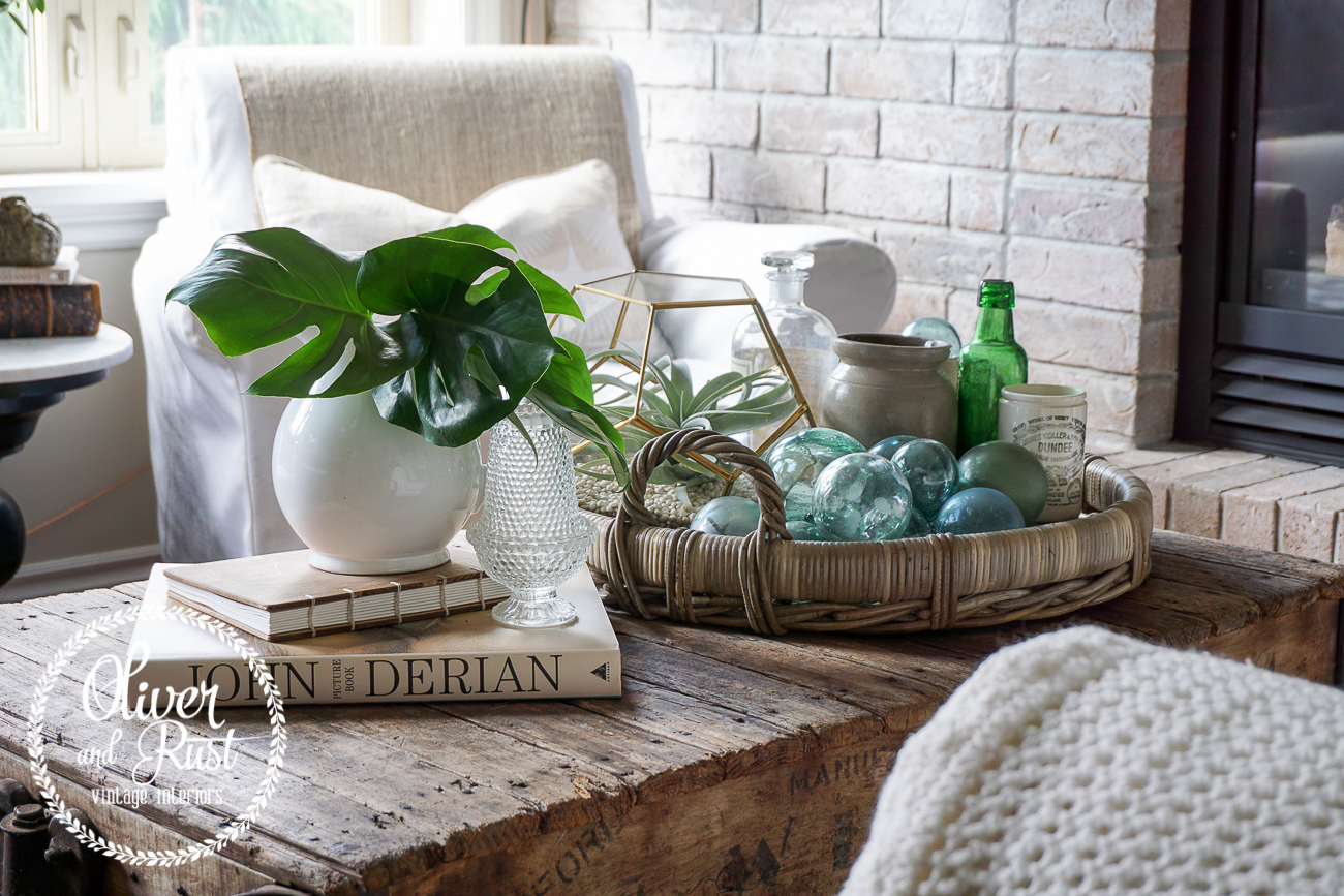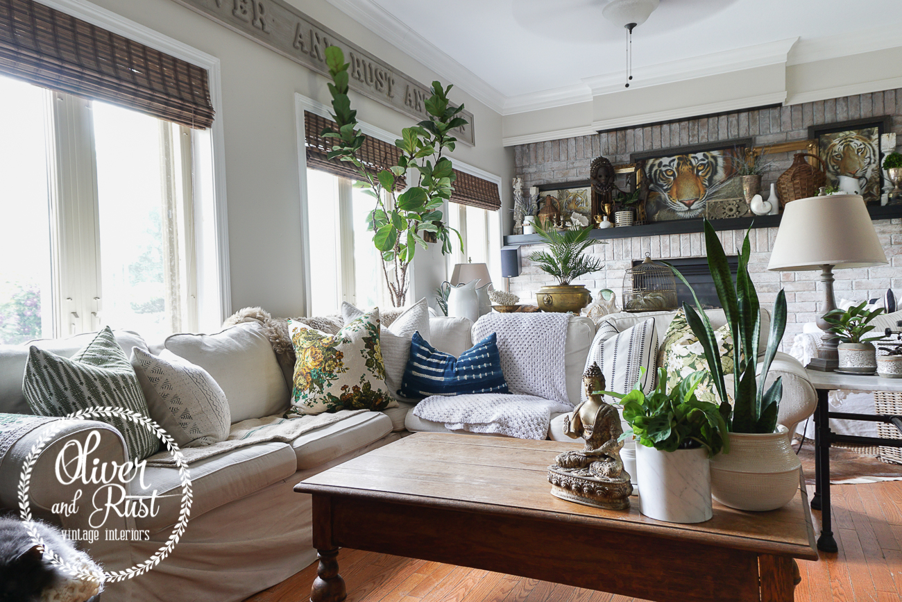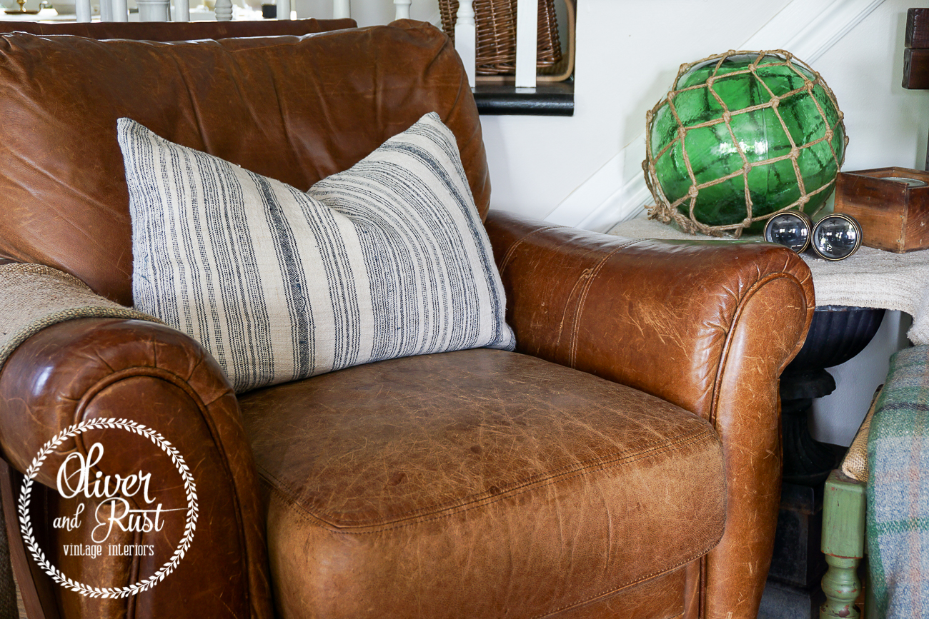 For this summer though, it is still piled with pillows in vintage and new. I love the combination of blues, greens, blacks and whites for summer. It feels fresh and keeps that eclectic vibe for our home.