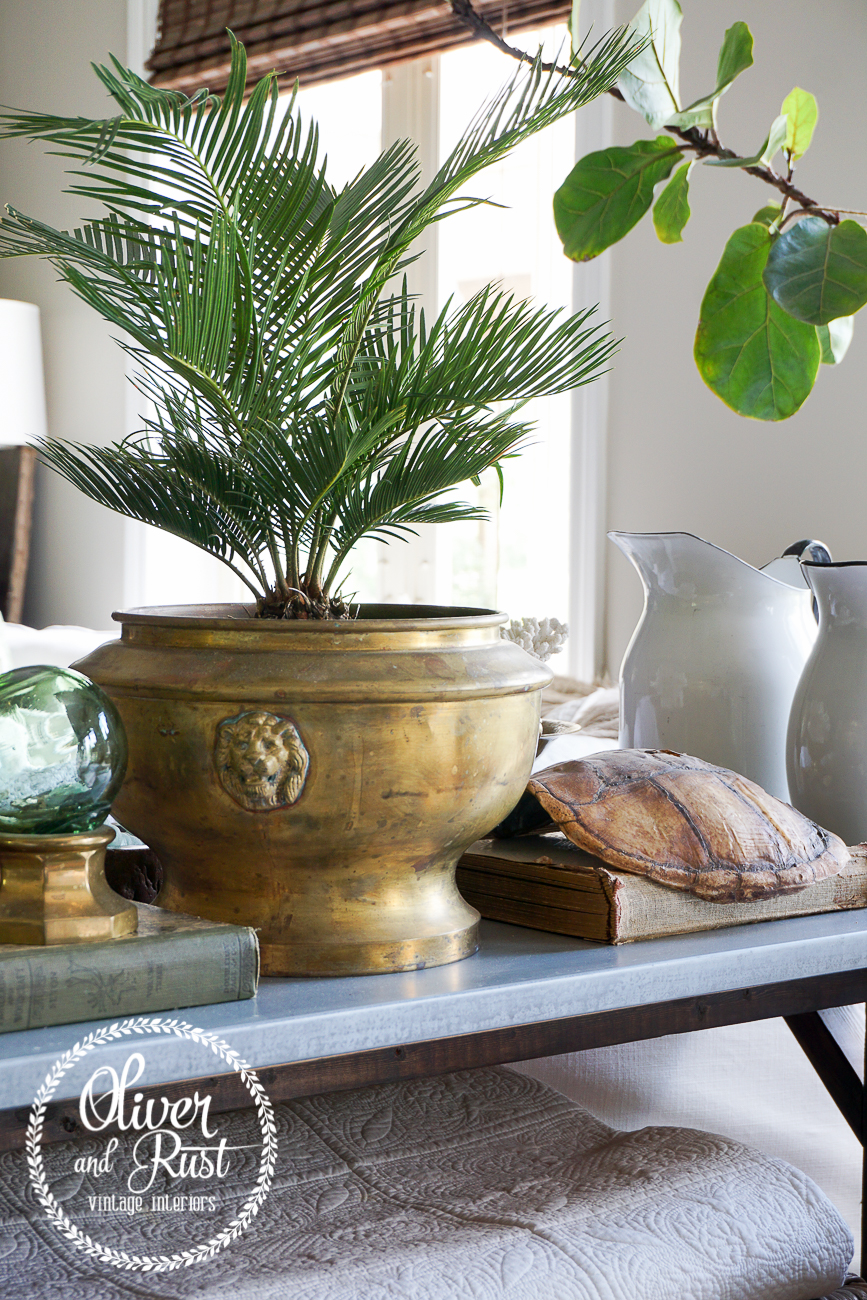 Our new console table rather unchanged since it's first appearance in the spring except for a huge hunk of decorative coral. I use the big old corbel to hold my hat so I don't lose it as I tend to not be great about putting it in the same place and find it crushed somewhere when I want to where it.