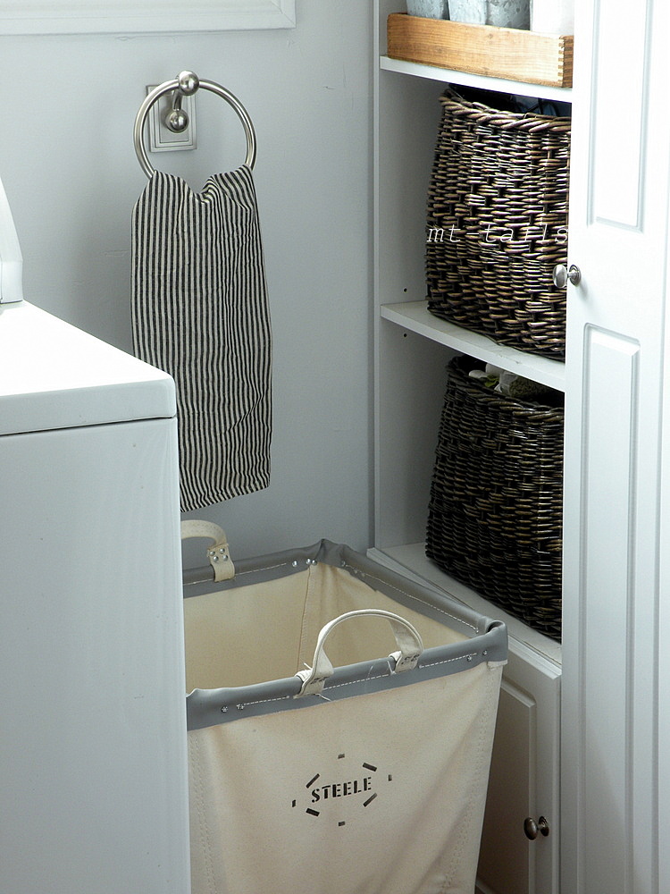 My laundry room is never a disaster but it doesn't look like this with no clothes in either the hamper or the basket. I am just so caught up but seriously without little magic wings it will be back to socks caught in behind the washer and softener stuck to the lid.