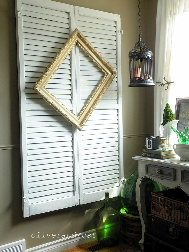 i love the white of the shutters on the wall (confession: i bought these in an amazing green colour and was so convinced they would be amazing up here but got them in place and hated how they looked. the amazing green looked dirty and dark up here, so out came one sided white paint. now LOVE.)