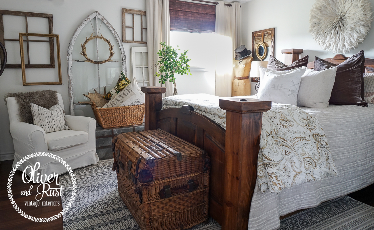 One of those chairs was the one in our master bedroom. The white slipcovered chair in here was a chair we bought before we had even bought our first home 12 years ago. I made the slipcover back when I didn't really know how to sew furniture things and it was on its last legs. The chair itself was still comfy and found a home at my in laws but it meant a "new" chair found a home in our bedroom. We had excess chairs [apparently on top of plants, I am also a chair hoarder] in our basement after the buyers remorse chairs made their home down there, so one of the smaller Ikea Jennylund chairs came into our bedroom.
