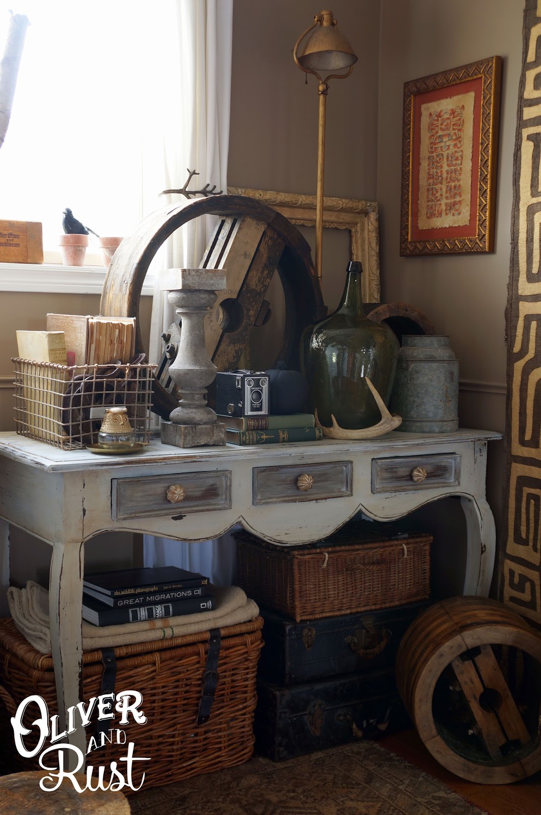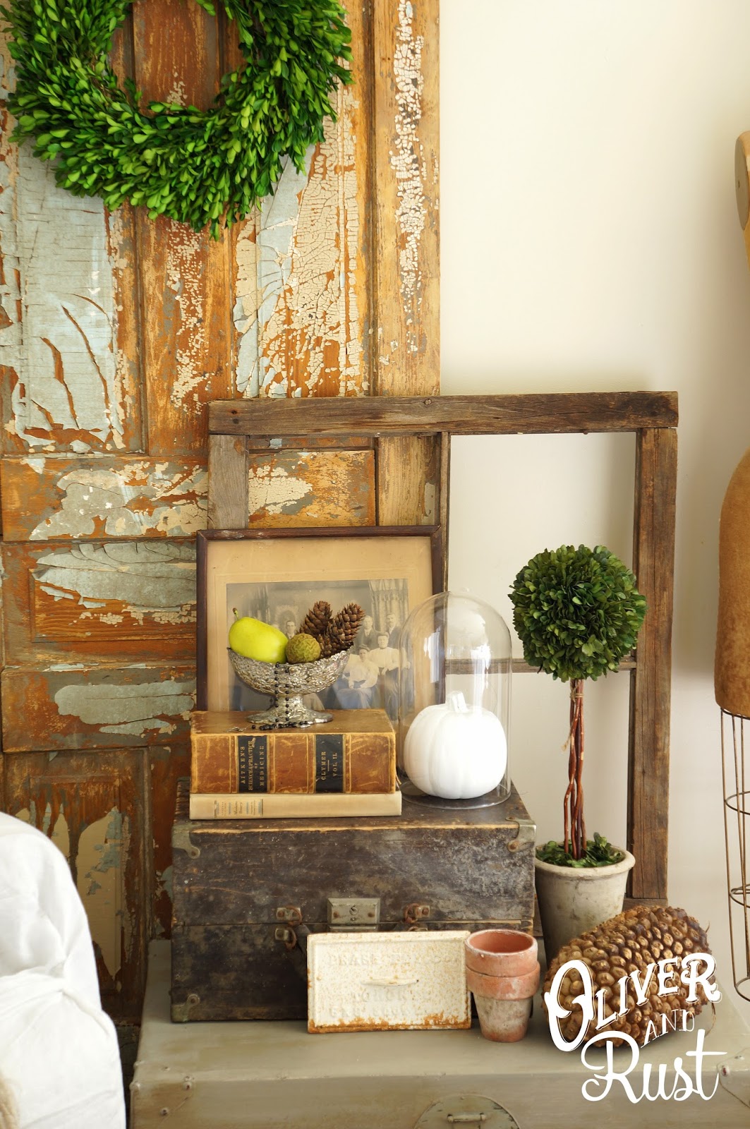 Since I don't have any photos of the show space to share yet, I thought I would give you a looksey into our upstairs fall decor. We keep it simpler upstairs and mostly change out some linens and change the shells to other nature items.