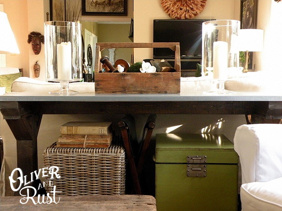 The x-base console table that Trev and I built last summer has seen its share of the then mt-tails now Oliver and Rust spotlight.