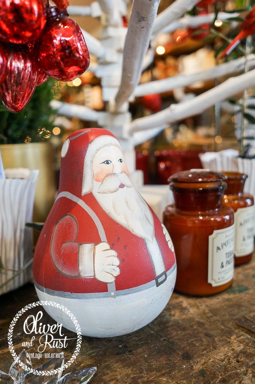 and lastly another of my favourite items that came into the shop. these cute roly poly santas came in 2 sizes and the paint is even perfectly chipped in some places making them actually look old.