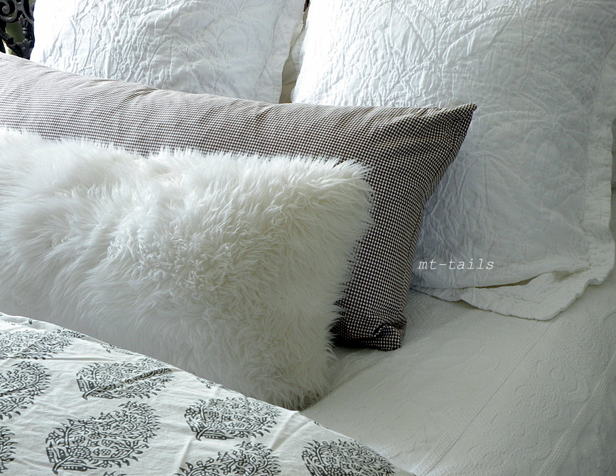 The furry bolster pillow is staying out for awhile yet. Spring is just around the corner though and I have to tell you, I am getting witchy winter fever. I swear I may need one of those light boxes.