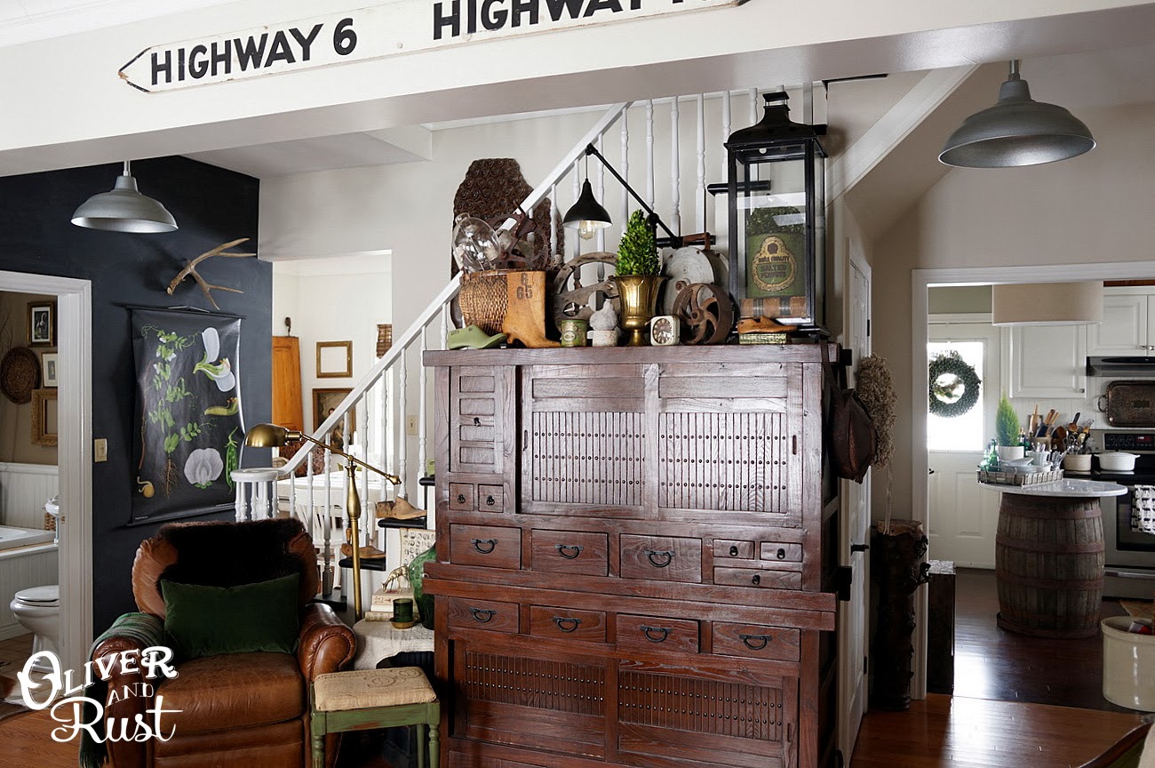 a complete view from bathroom to the kitchen. the christmas tree is down and the house is back to breathing it's normal spaces. i put so much away (don't start laughing at me, this is as sparse as maximalists get) and am enjoying the lack of glitter.