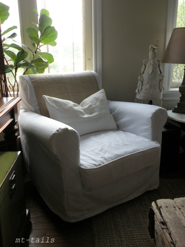 First: the finished product and exhibiting the main reason for slipcovers. WASHABLE! but so cute too!